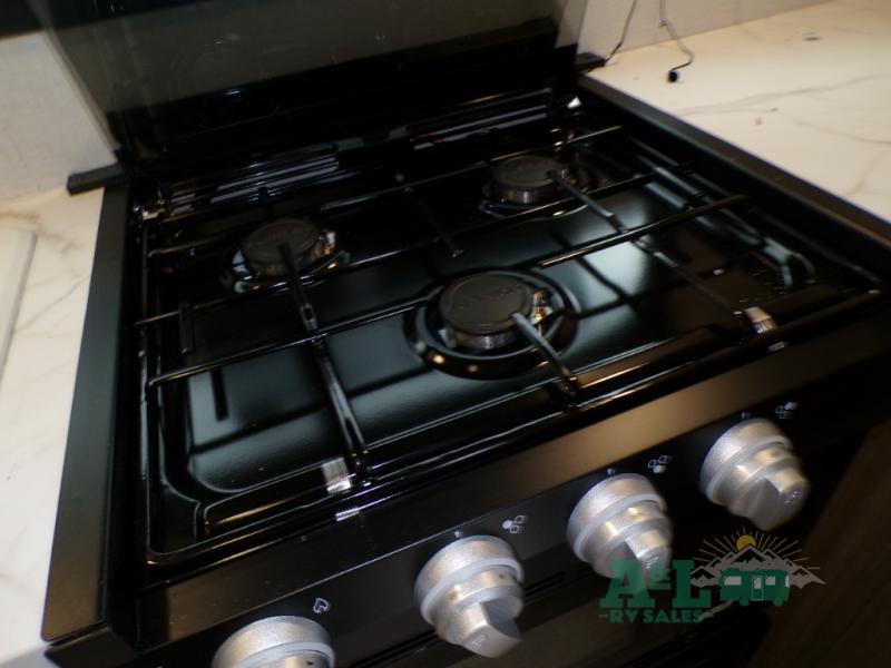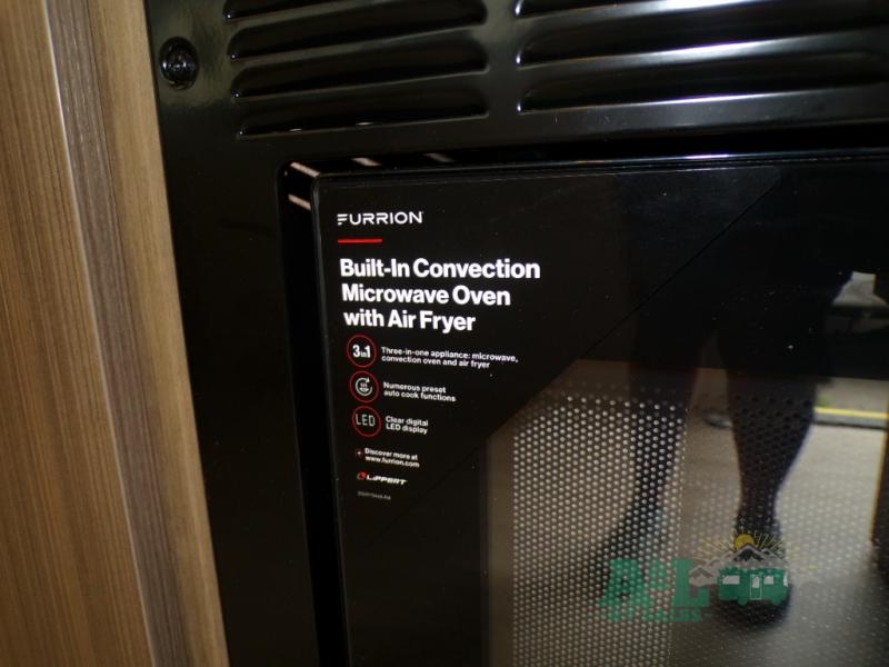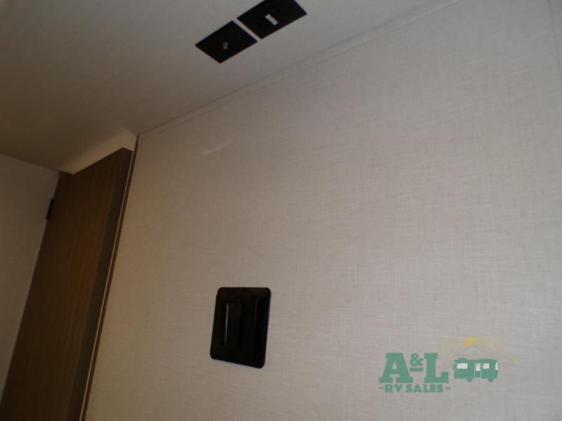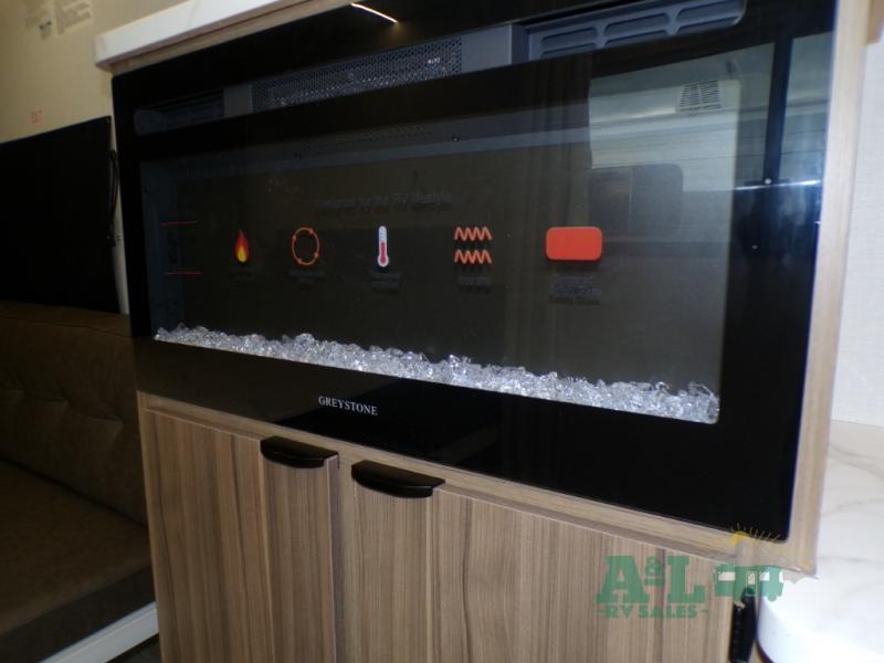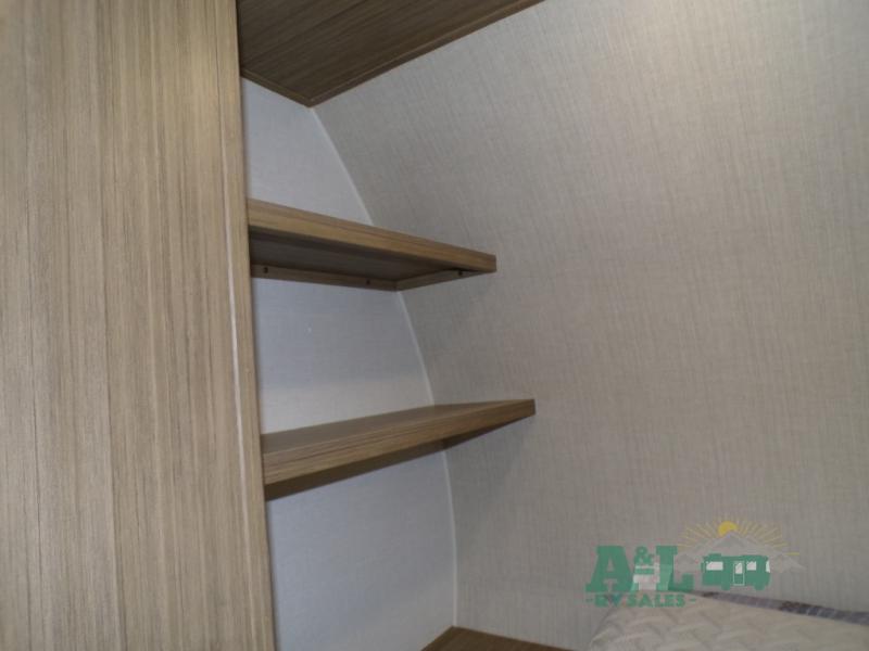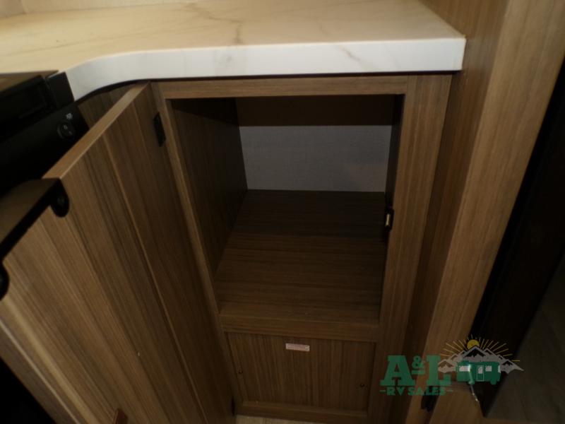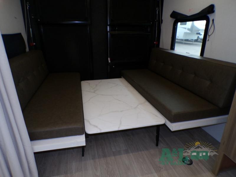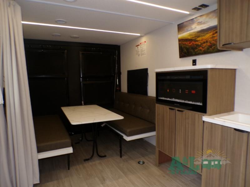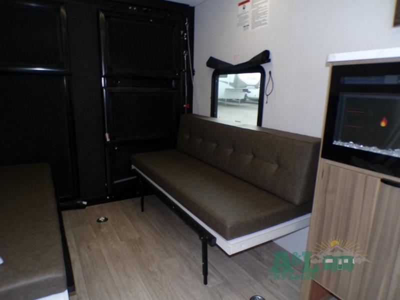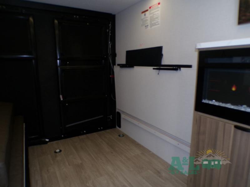 Make the most of your vacations with this MAX toy hauler! The 14' garage area includes dual sofa sleepers with a table in between to dine at, plus a 3,000 lb. ramp door for easy unloading. Enjoy the fireplace for a cozy evening indoors while your dinner is cooking on the three burner cooktop or being heated up in the microwave. After a fun day of trail riding, you can clean the mud out of your hair with the 30" x 36" shower with a skylight in the full bathroom. The front private bedroom has a king bed to lay your head on at night, shoe storage under the bed, a walk-in closet, and wardrobes on either side of the bed for even more clothing storage space.