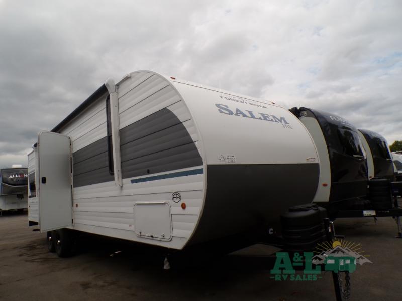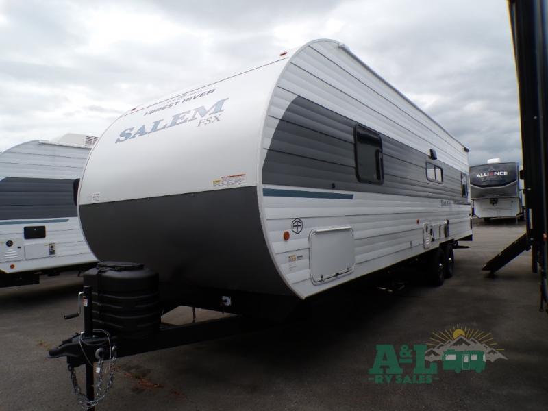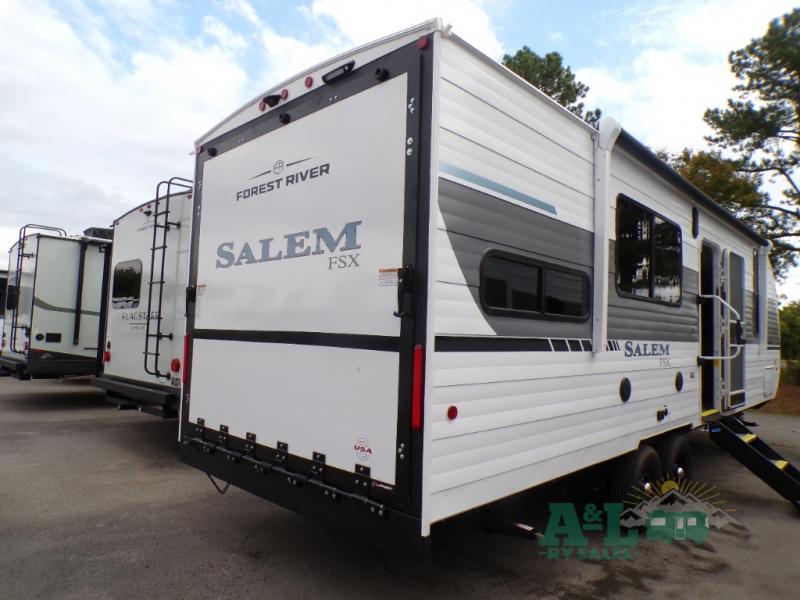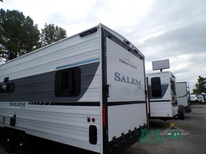 The Forest River Salem FSX travel trailers and toy hauler travel trailers are ultra comfortable and lightweight, perfect for first time or seasoned campers alike! You will love how easy it will be to relax with residential features that will make your space feel just like home, and the durable construction means you can enjoy your RV for years to come. There are a wide variety of floorplans to choose from, including couple's trailers, bunk models, and toy haulers, all with full bath and kitchen amenities and plenty of storage for all your gear!