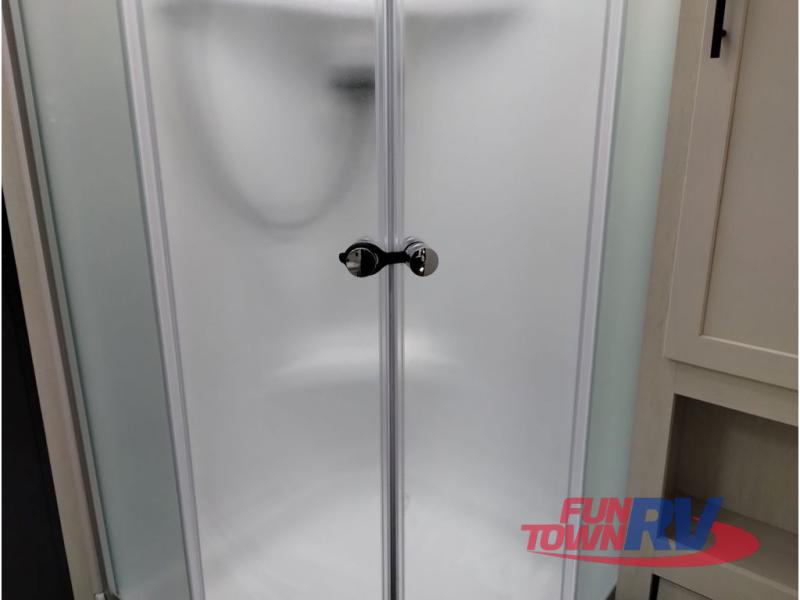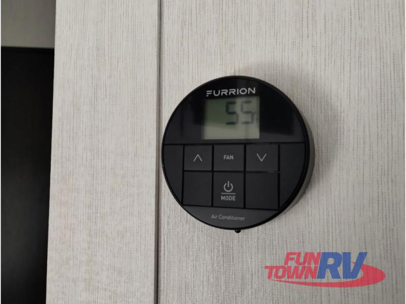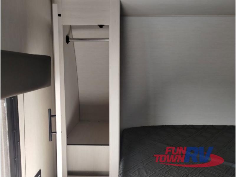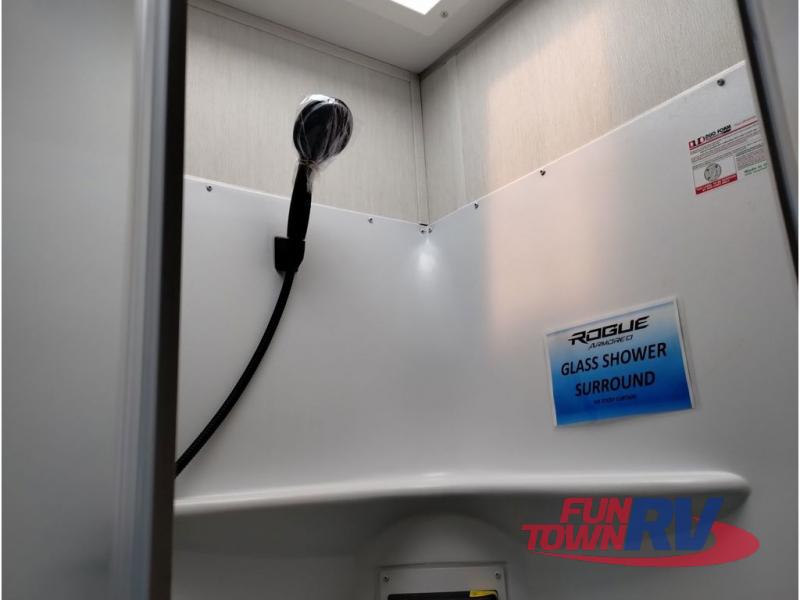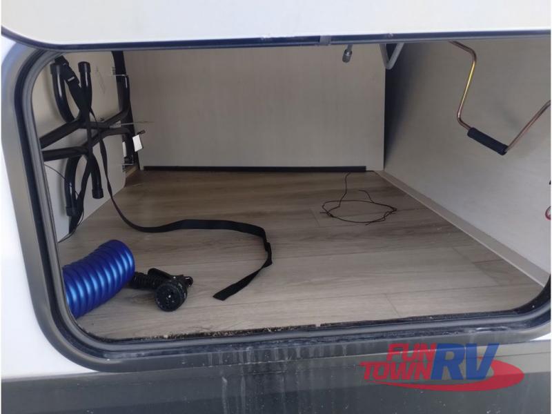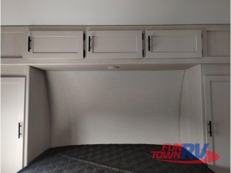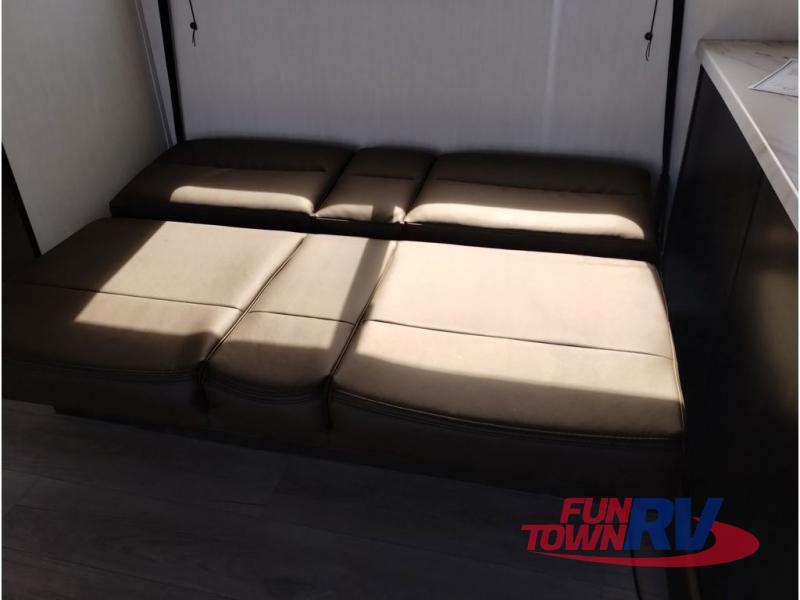You're going to love this spacious toy hauler with a kitchen slide out! There is a 10' 6" garage with 15' 10" total garage space if you include the main living area where the flip-up sofa and optional lounge chairs are. Once your toys are unloaded, your crew can relax on the roll-over sofas, and at night they can sleep on the quick set queen bed system. You will enjoy the front master bedroom with a Rogue king bed, dual wardrobes, and a private entrance into the dual entry bath!