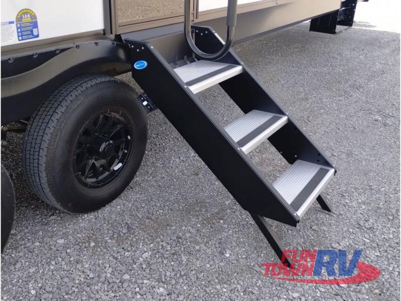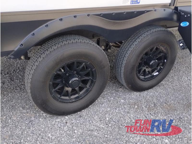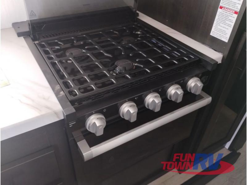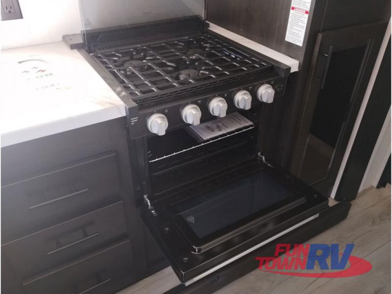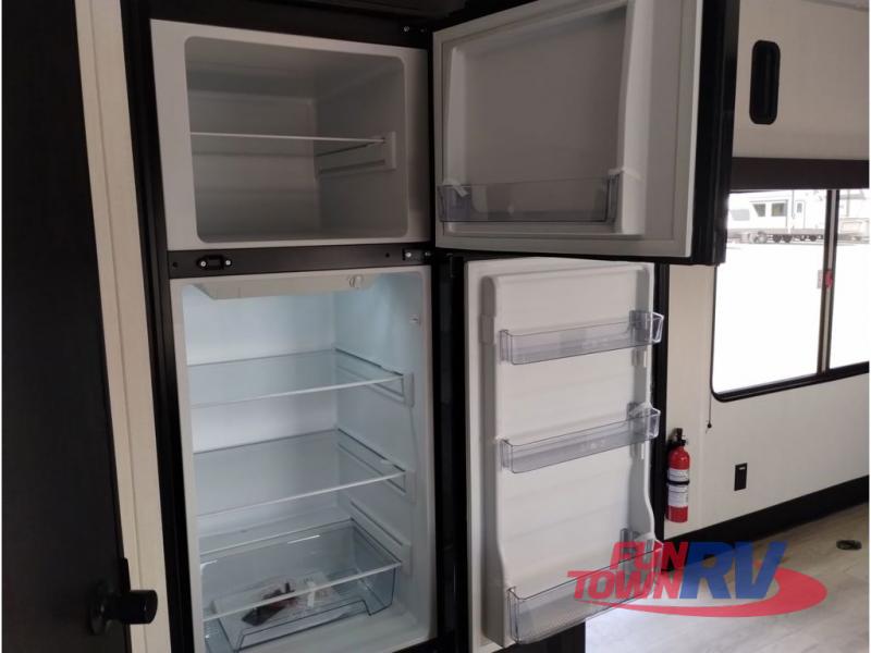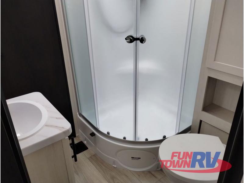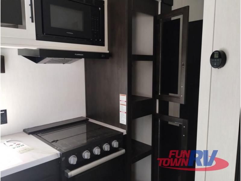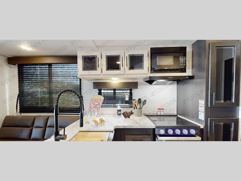 With any Vengeance Rouge SUT toy hauler travel trailer or fifth wheel by Forest River you can bring along your favorite ride-on toys, while still enjoying at-home comforts. Each one is built with a seamless roofing membrane with heat reflectivity and an armored underbelly tank enclosure for added strength and durability, and the 8' 6" wide body construction means you can bring along your favorite ride-on toys. Inside, you'll find a 1000 watt microwave and a three burner cooktop with an oven, seamless countertops, plus zebra shades that filters light and are blackout capable. These toy haulers also include 12V heat pads on all the holding tanks, a 15,000 BTU A/C unit, and many more amenities to make camping easier than ever.
