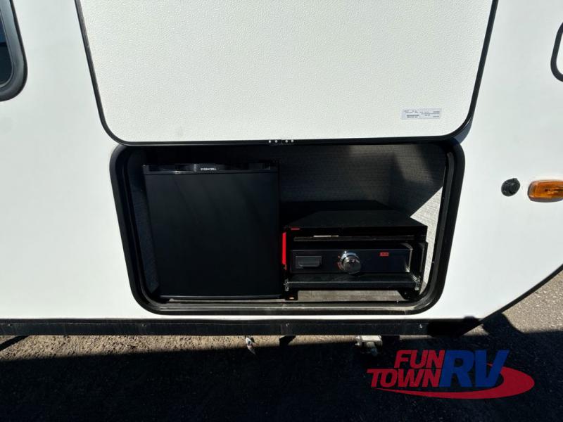 The Forest River Wildwood FSX travel trailer and toy haulers are easy to tow and easy to love, so come take a look! With each model you'll appreciate the 20K BTU furnace and A/C unit to keep you comfortable year around, and the large windows will make the whole unit seem bright and open. The EZ entrance includes an XL folding grab assist handle, and the power awning with LED lights provide an outdoor living space you are sure to love. The lightweight Wildwood FSX travel trailers and toy haulers are your ticket to the great outdoors. Choose yours today!