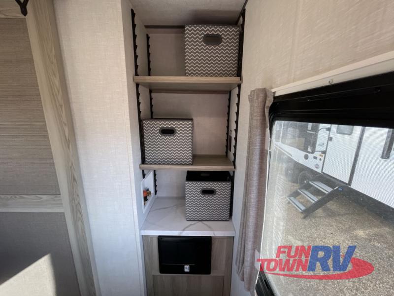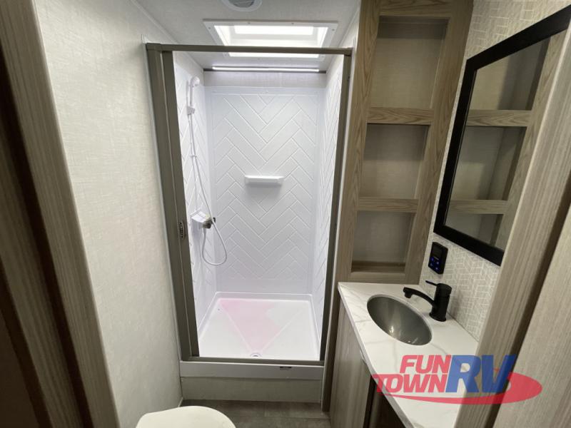 The Forest River Wildwood FSX travel trailer and toy haulers are easy to tow and easy to love, so come take a look! With each model you'll appreciate the 20K BTU furnace and A/C unit to keep you comfortable year around, and the large windows will make the whole unit seem bright and open. The EZ entrance includes an XL folding grab assist handle, and the power awning with LED lights provide an outdoor living space you are sure to love. The lightweight Wildwood FSX travel trailers and toy haulers are your ticket to the great outdoors. Choose yours today!