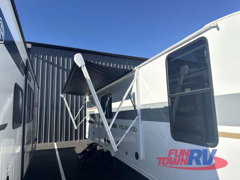Start making memories with friends and family in any one of these Forest River Wildwood Select travel trailers! Their aerodynamic front profile makes them easy to tow and the AlphaPly roof membrane is ultra durable. They also have a rock guard to protect your unit from road debris. An auto ignition 20,000 BTU furnace will keep your unit warm in the cooler months and the 13,500 BTU A/C will keep you cool in the warmer months. These models also include radial tires, a patio awning, LP Quick Connect, and more!