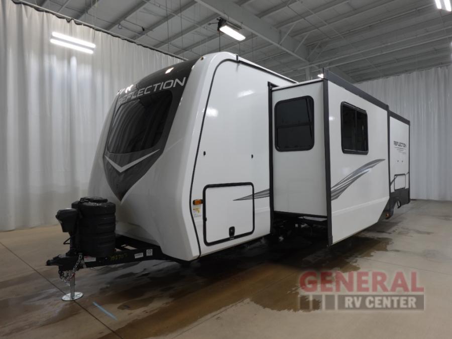 With any Reflection travel trailer by Grand Design, you will have a solar panel for off-grid camping and a 60 amp charge controller and inverter prep, a Universal All-In-One docking station, unobstructed pass-through storage, and Goodyear Endurance tires. Each is constructed of gel coat exterior sidewalls, residential 5" truss rafters, walk-on roof decking, a fiberglass and radiant foil roof and front cap insulation plus laminated aluminum framed side walls, roof and end walls in slide rooms. Head inside to enjoy residential hardwood cabinet doors, premium Congoleum flooring, a spacious shower with a glass door, and many more comforts!