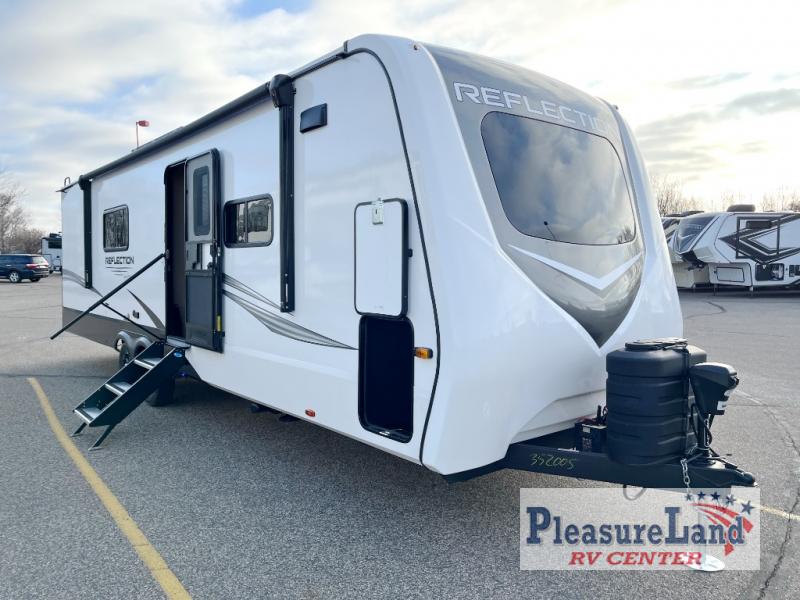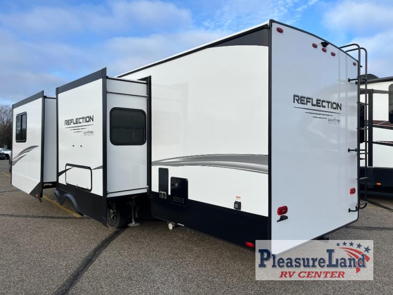 With any Reflection travel trailer by Grand Design, you will have a solar panel for off-grid camping and a 60 amp charge controller and inverter prep, a Universal All-In-One docking station, unobstructed pass-through storage, and Goodyear Endurance tires. Each is constructed of gel coat exterior sidewalls, residential 5" truss rafters, walk-on roof decking, a fiberglass and radiant foil roof and front cap insulation plus laminated aluminum framed side walls, roof and end walls in slide rooms. Head inside to enjoy residential hardwood cabinet doors, premium Congoleum flooring, a spacious shower with a glass door, and many more comforts!