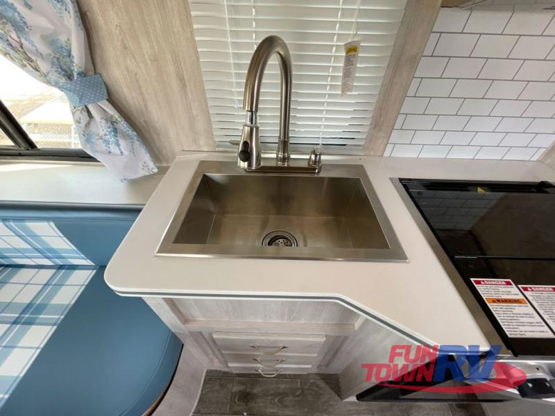 With any Vintage Yellowstone travel trailer by Gulf Stream, you will be taken back to the fun of the 50's with vintage Laura Ashley plaid exterior graphics and Laura Ashley timeless British designs. Each model is constructed with laminated fiberglass sidewalls with a layer of composite substrate, a one-piece fiberglass roof, and a lightweight welded aluminum frame. The Vintage Yellowstone travel trailers include high-performance vinyl flooring, an all-woodgrain interior and a solid surface countertop. There is also a Laura Ashley comforter with pillow shams and a Laura Ashley textiles package you are sure to love. A tankless water heater will provide endless hot showers, and a 100-watt roof-mounted solar panel will provide off-grid capabilities!