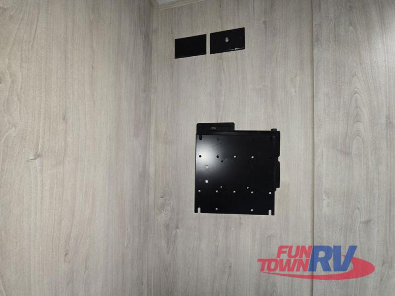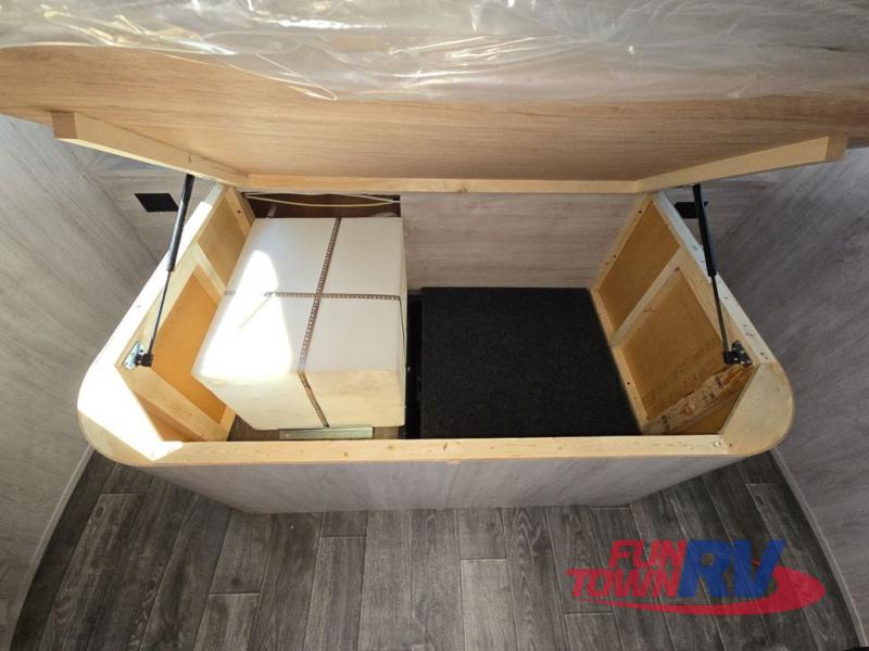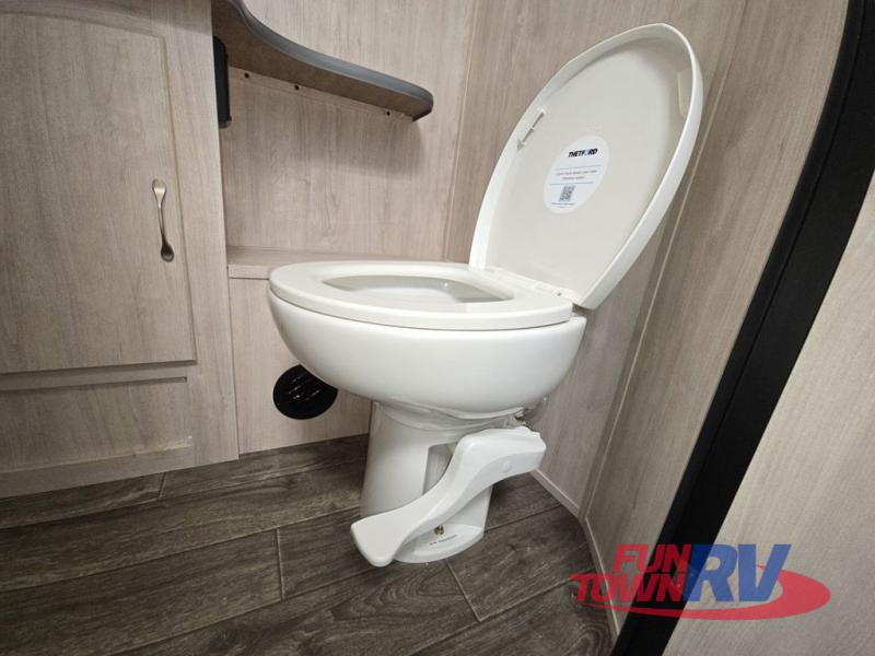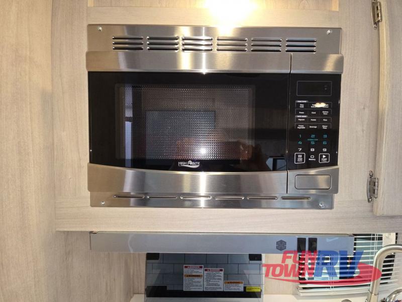 Step into comfort with this classic travel trailer in tow. You will find a rear vintage booth dinette and a sofa slide out with end tables to set your drinks on. The kitchen is complete with a microwave oven, cooktop, plus overhead cabinets for your belongings. After a day outdoors, you can clean up in the 24" x 36" shower, and there is a private toilet and sink across the hall if someone needs to use it while you're cleaning up. This model will feel just like home with its RV queen bed and dual shirt closets for your clothes.
