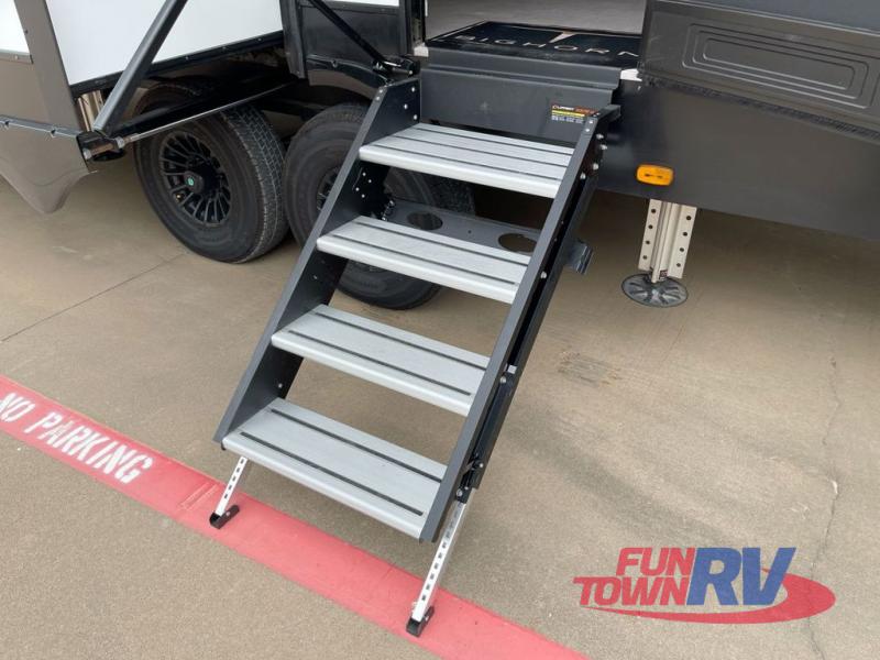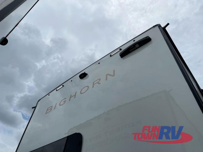 With any Bighorn fifth wheel by Heartland you will enjoy a luxurious interior and outdoor features to complement your adventurous lifestyle. Each one features tire pressure monitoring system and bighorn custom hardwood cabinetry and slide fascia for a durable fifth wheel made to last. All of your gear can fit in the super HRV exclusive exterior store mor storage system w/ slam latch baggage doors , and you can easily set up camp with the 6-point hydraulic leveling system. The high performance rubberized suspension will provide a smooth ride each time you head to the campground, and there are three full body paint options for an eye-catching exterior. Head inside to find solid surface countertops throughout, tinted frameless windows, a luxurious one piece fiberglass shower, oversized copper sink with roller cover, and the list goes on. Start a new adventure in a Bighorn fifth wheel today!