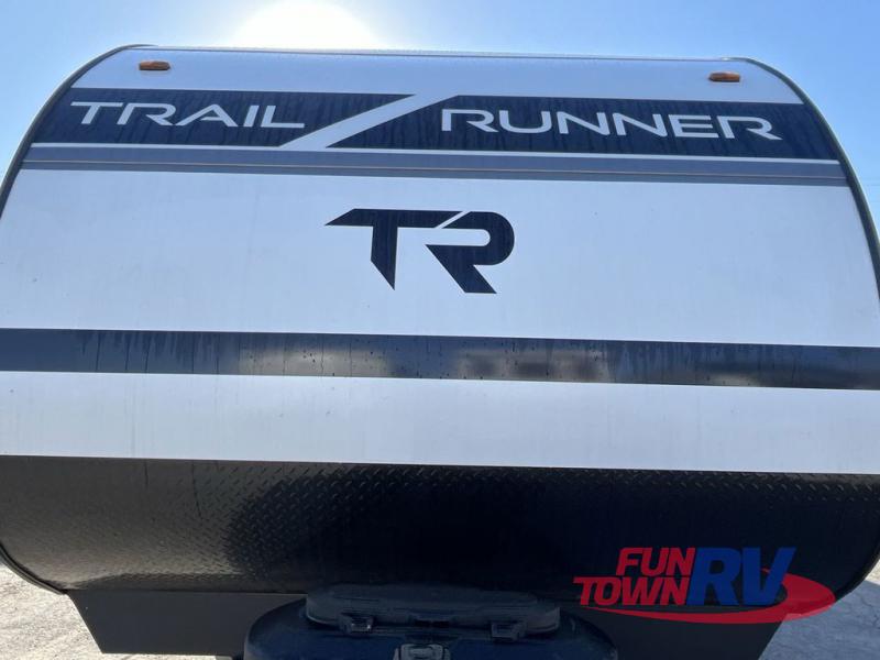Paradise awaits at the end of the trail with one of these Heartland Trail Runner travel trailers! Experience better wind and water deflection, added strength, and a reduction of tongue weight with the hybrid aluminum front profile that has an aerodynamic radius front cage. A cambered structural steel I-beam frame holds them together and a heated enclosed underbelly protects the units vitals. There is an industry leading mammoth storage space of 57 cu. ft. pass-through storage so you can bring all of your outdoor gear with you. Roller shades in the main living area, woven flooring in all slide rooms, master suites with CPAP storage, and upgraded pressed counters give you the at-home feel you desire. Come find the perfect model for you today!