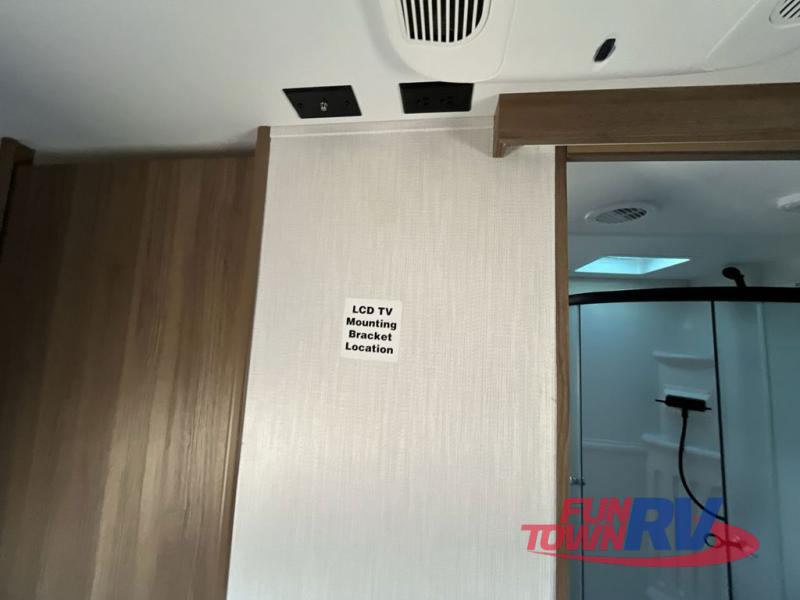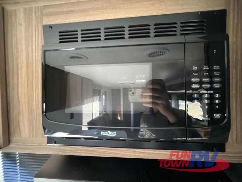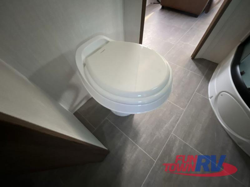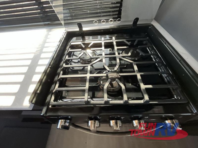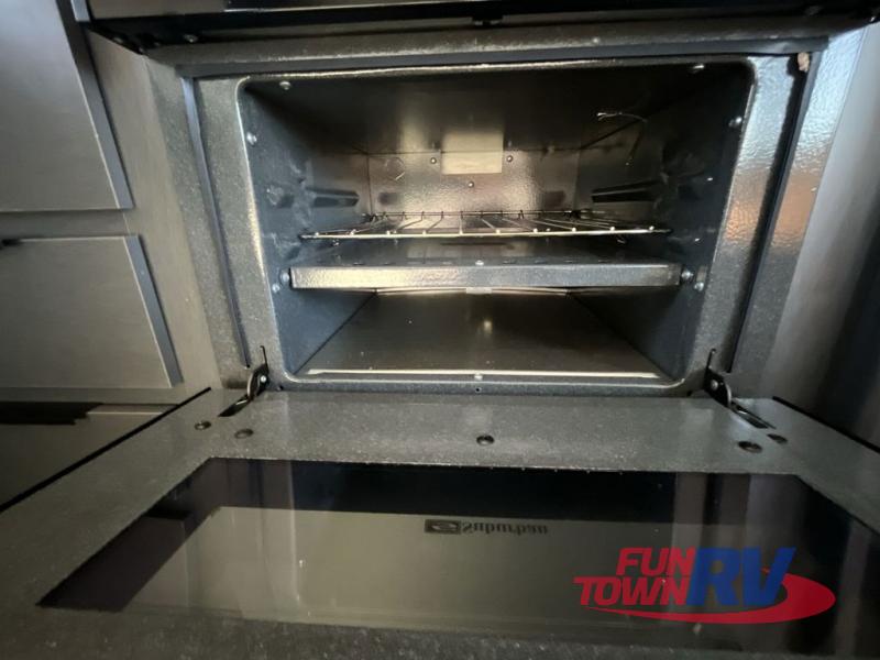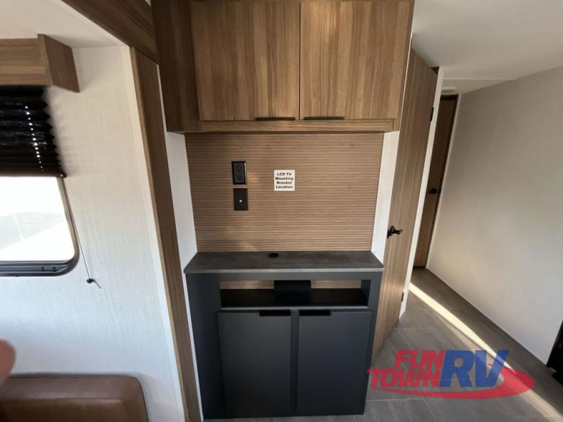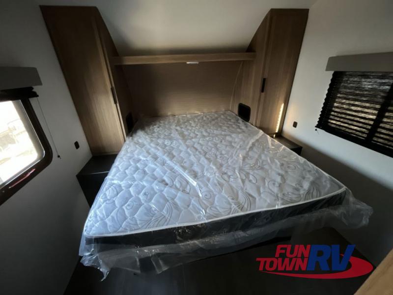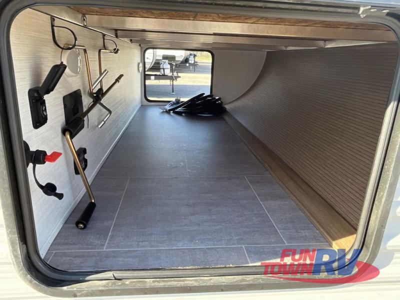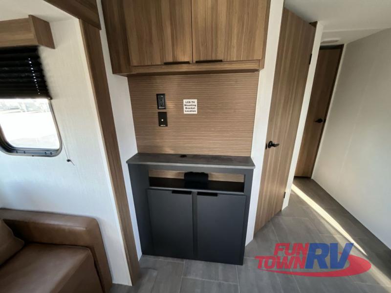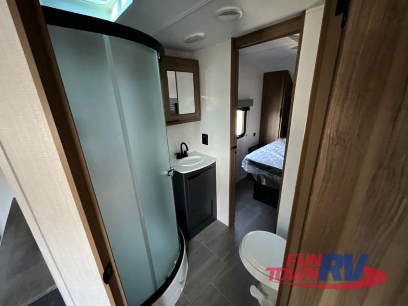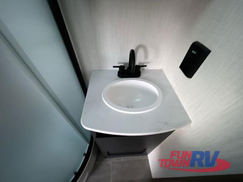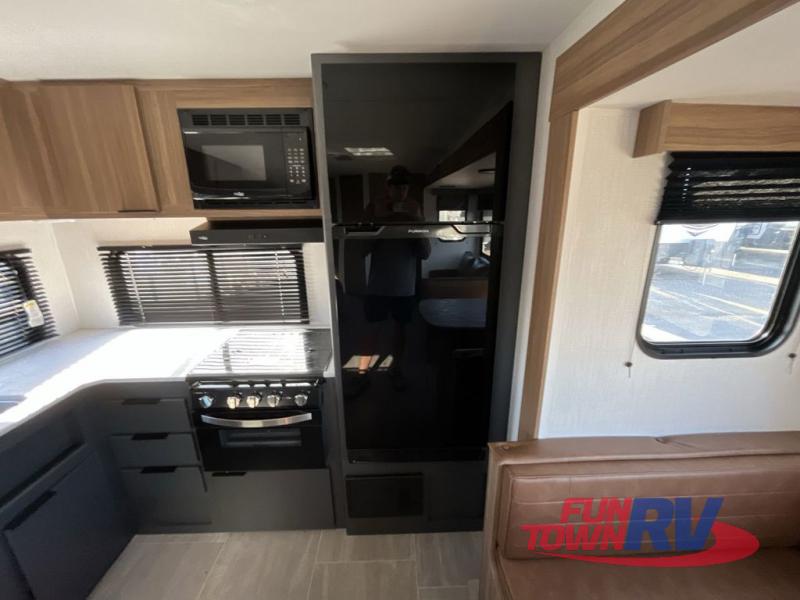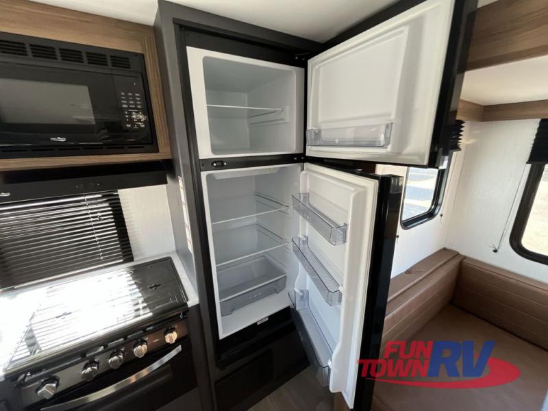 The chef will love cooking in the rear kitchen of this travel trailer! It has plenty of countertop space for meal prep and the U-shaped dinette is a comfortable place to enjoy them at. After you have stuffed your bellies full, relax on either the sofa or one of the two recliners while it settles. Freshen up each morning in the dual entry bathroom with the radius shower that has a skylight above to bring the outdoors inside. It even leads directly into the front private bedroom which has a queen bed with under-bed storage, wireless cell charging stations, and CPAP storage. Keep the dirt outdoors where it belongs with an outside shower!