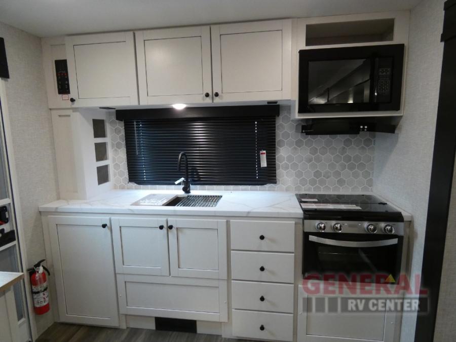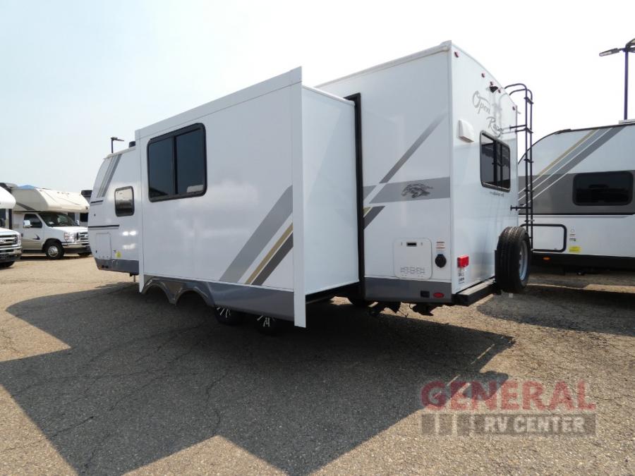 Each one of these Highland Ridge RV Range Lite travel trailers maximize their interior space while staying lightweight thanks to the TuffShell fiberglass walls! The residential floor slides create more interior space, and the residential vinyl flooring throughout makes them kid and pet friendly. A few construction features you will appreciate include a fully-walkable roof, a thermal seal which means the underbelly is enclosed, heated, and insulated, and a fully insulated roof with a PVC roofing membrane. Plus, there is an exterior grill hookup quick connect port, self-adjusting electric brakes to help you safely arrive, and an oversized pass-through storage area with motion lighting. Each model also includes the Xtend Solar I Package with a 200 watt solar panel with a 30 amp solar controller so boondocking is easier than ever.
