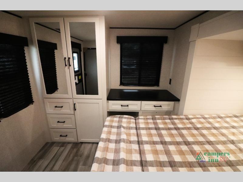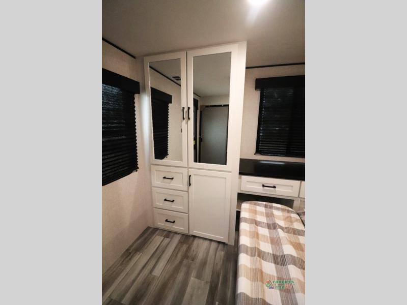 This model is ideal for families and couples seeking a spacious, well-appointed travel trailer. With two private bedrooms, it offers flexibility and comfort for various travel companions. The modern amenities and optional upgrades ensure a personalized camping experience tailored to your needs.