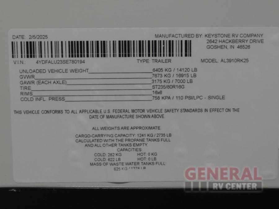 Keystone RV Alpine fifth wheel 3910RK highlights: