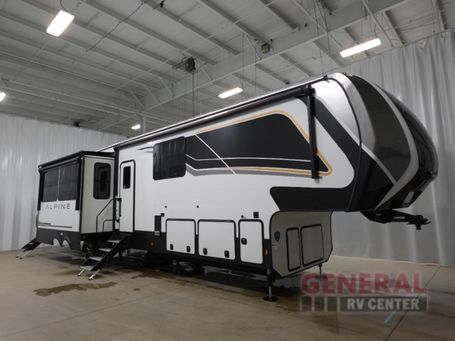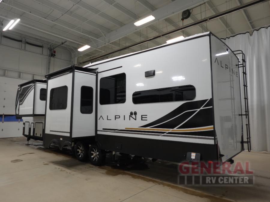 Luxury is not an option, it is a standard with each one of these Keystone RV Alpine fifth wheels! A 8' 4" wide body construction will create an open, residential feeling, and cutting-edge technology will provide a hassle-free camping experience. The Tru-Fit slide construction is more durable and minimizes motor structural stress, as well as resists leaking, and the Blade Pure airflow system provides residential comfort with its high-performance. Each fifth wheel includes designer flooring throughout, stunning solid wood cabinet doors, luxurious crown molding, and solid surface countertops in the kitchen. The exterior also includes an outside shower with hot and cold water, Lippert strut assisted SolidSteps, Hitch Vision with LED lighting, and many more conveniences!