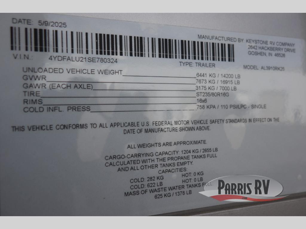 Keystone RV Alpine fifth wheel 3910RK highlights: