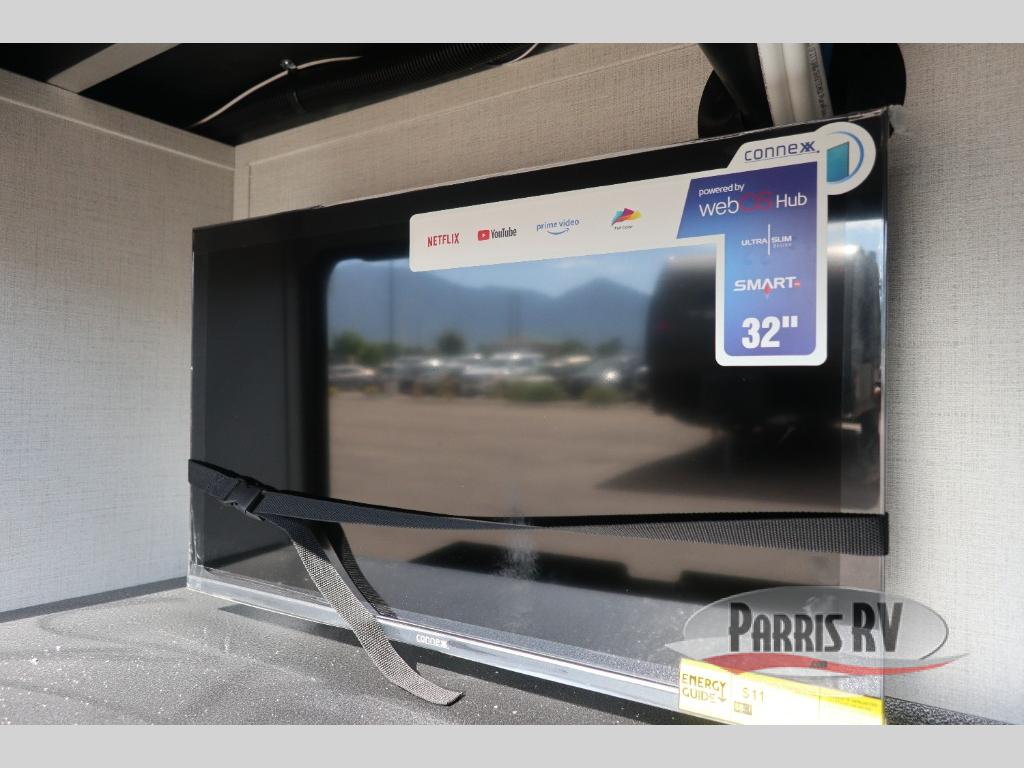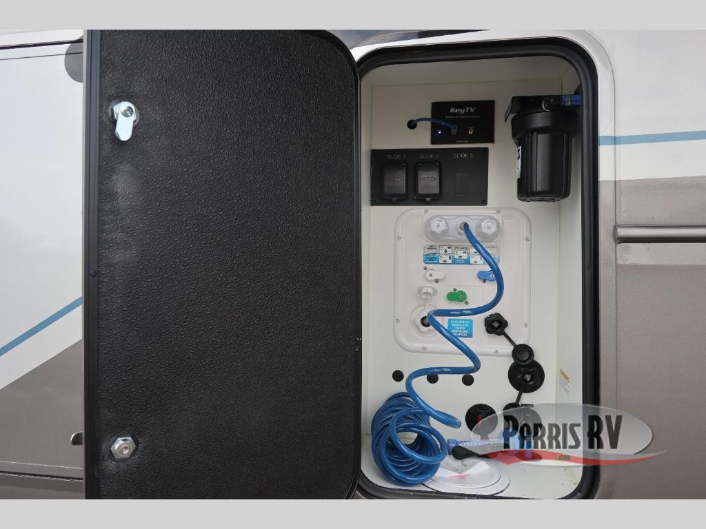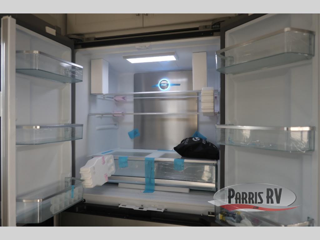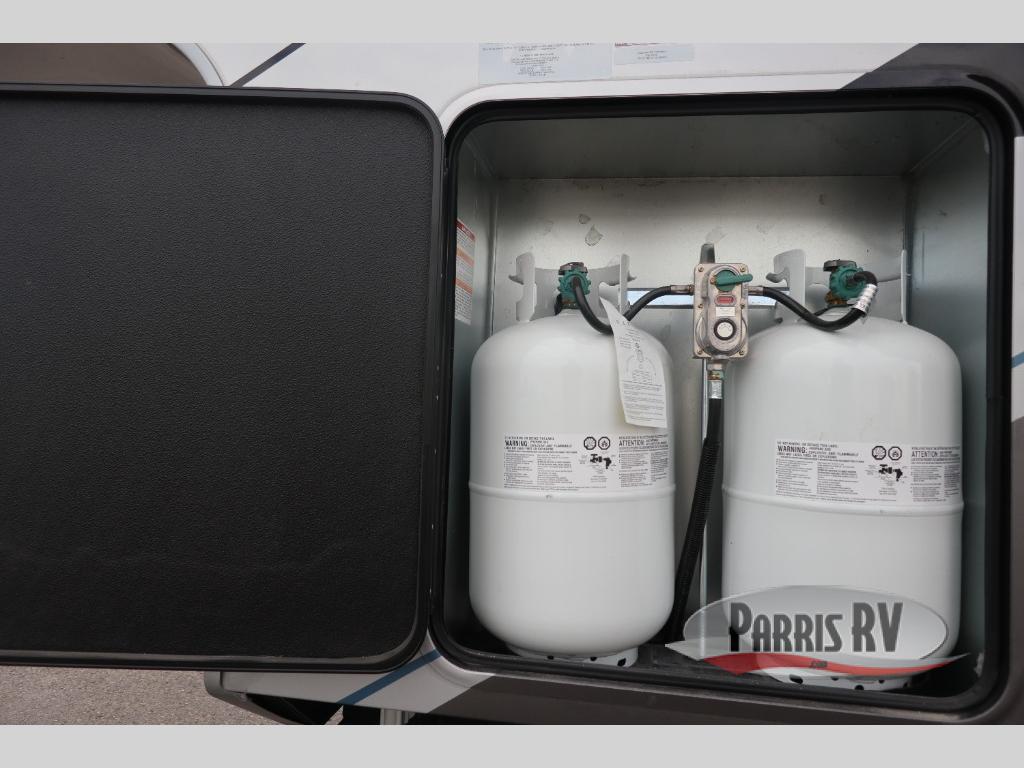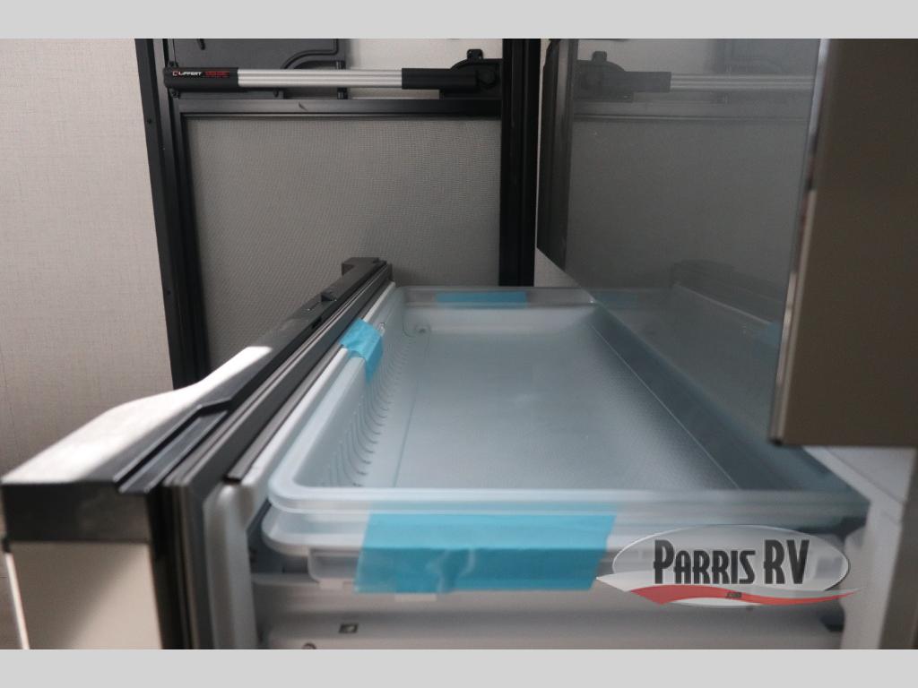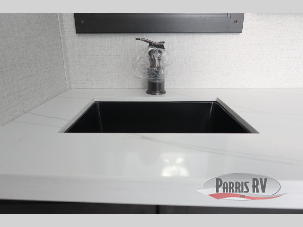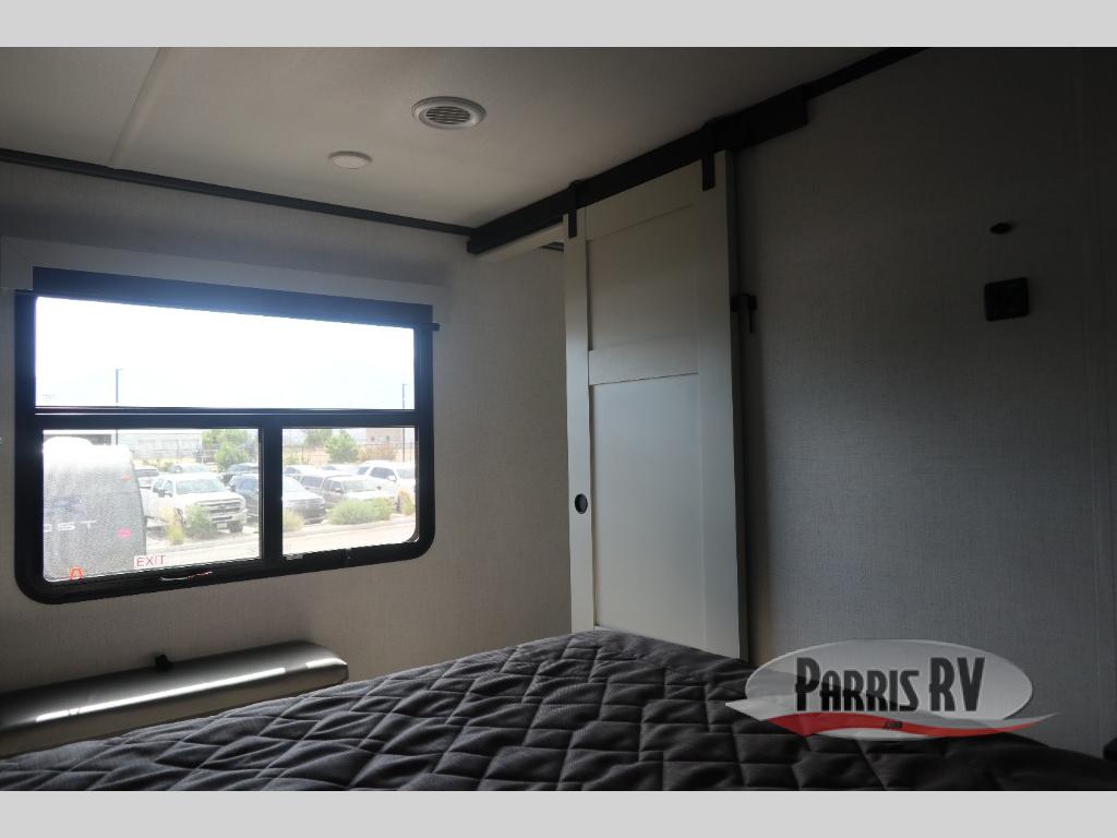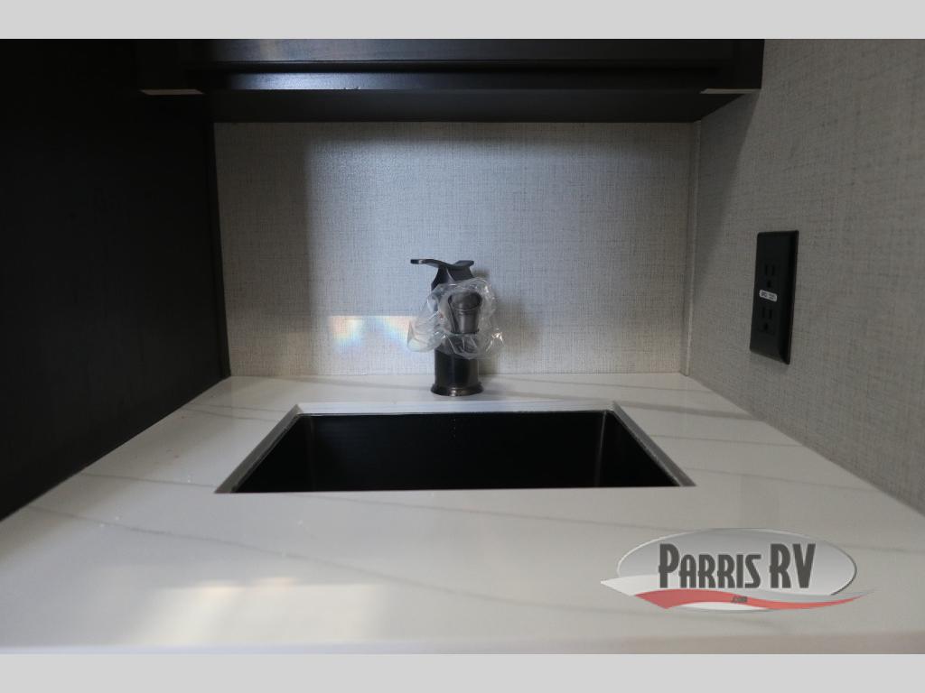 With a bath and a half, it's a clean decision to take this fifth wheel with you on your next camping trip! One of the dual entry doors leads directly into the rear kitchen which has a large pantry and an 18 cu. ft. residential refrigerator to store your food items. The free standing dinette and tri-fold sofa sleeper slide and opposing tri-fold sofa sleeper slide opens up the middle living area for more interior space. The half bathroom is conveniently located straight in through the main entry and features washer and dryer prep for clean clothes throughout your entire trip. The master suite not only has a king bed slide with storage underneath and a bench next to a dresser, but also access into the front full bathroom which has a dual sink vanity, a shower with a seat, and a toilet with privacy walls!
