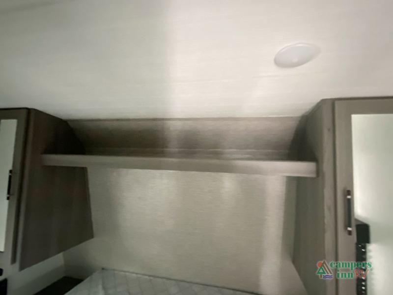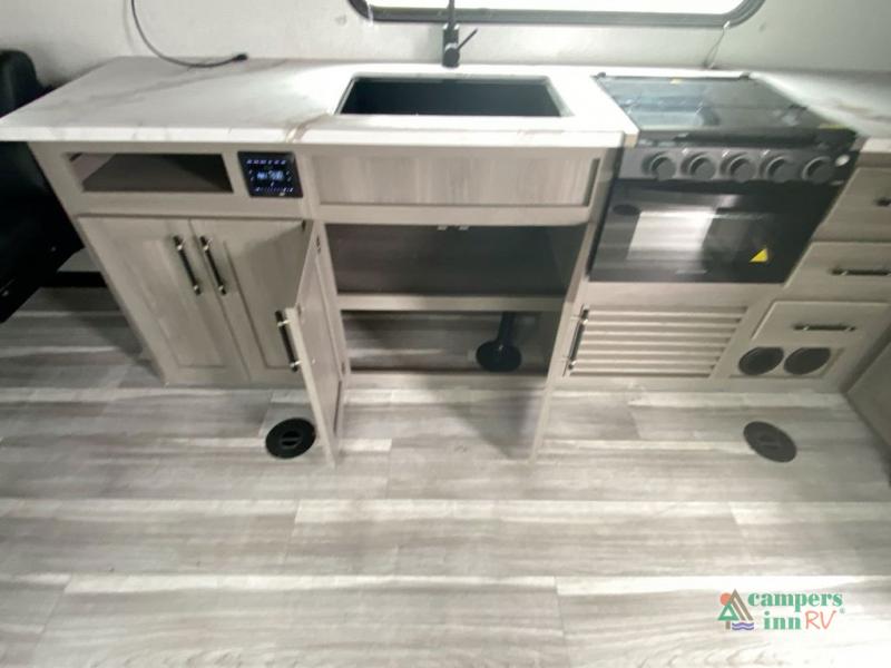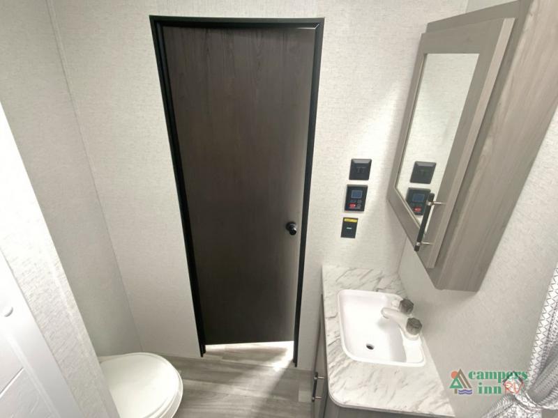 Load up your favorite off-road riding toys and head to your favorite trails, dunes, or competition rally with family and friends. This unit sleeps six with the RV queen bed in front and the dual roll over sofas and bonus bunk in back. The 13' garage with 5K inter-lock system tie downs will get all of your cargo safely to your destination. Once in camp, the rear ramp door will help you easily unload and then set up the sofas with table in between. A full kitchen allows you to refuel your bodies easily by providing a three burner range and 17" black oven, a 10.7 cu. ft. 12V refrigerator for your perishables, and a residential microwave oven to heat up leftovers. The full bath will allow everyone to easily clean up after a full day of fun, and you will enjoy the private front bedroom with an RV queen bed and a full closet for all of your things. On the outside, an 18' power awning provides added living space, or you might like to add the optional patio package for a raised extension of your unit giving you an outdoor space to enjoy.