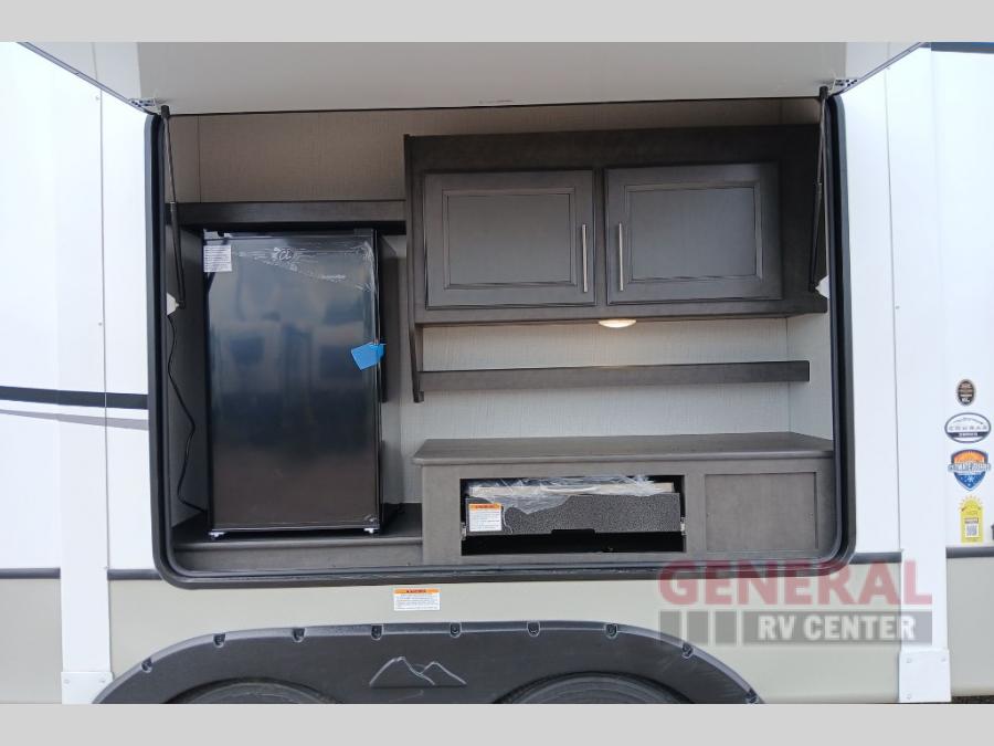 You'll have all that you need to enjoy every adventure with this Cougar Half-Ton fifth wheel! A 60" tri-fold sleeper sofa, theater seating, and a booth dinette give you comfortable accommodations to offer to any friends that stop by, and you'll be able to offer them more than just a place to sit because the 21" Furrion range and microwave will allow you to prepare sweet treats for those guests. If you all head out to look at the stars, you can grab some extra lawn chairs from the exterior pass-through storage compartment.