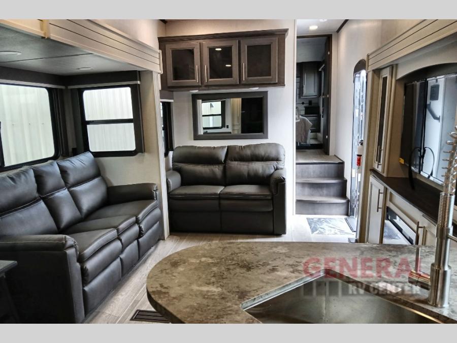 The Keystone Cougar Half-Ton fifth wheel and travel trailers are known as one of America's favorites for a reason! Some of those reasons are the exclusive features that come from Keystone, like the Winegard Air 360+ omni-directional rooftop antenna, the in-floor heating ducts, and the Hyper Deck flooring. The Cougar Half-Ton has a Climate Guard protection package to keep you safe during inclement weather, along with two roof attic vents, PEX plumbing and more. Use the 21" Furrion range with Piezo ignition to create all of those familiar meals from home, and enjoy endless hot showers with the Girard tankless on-demand water heater!