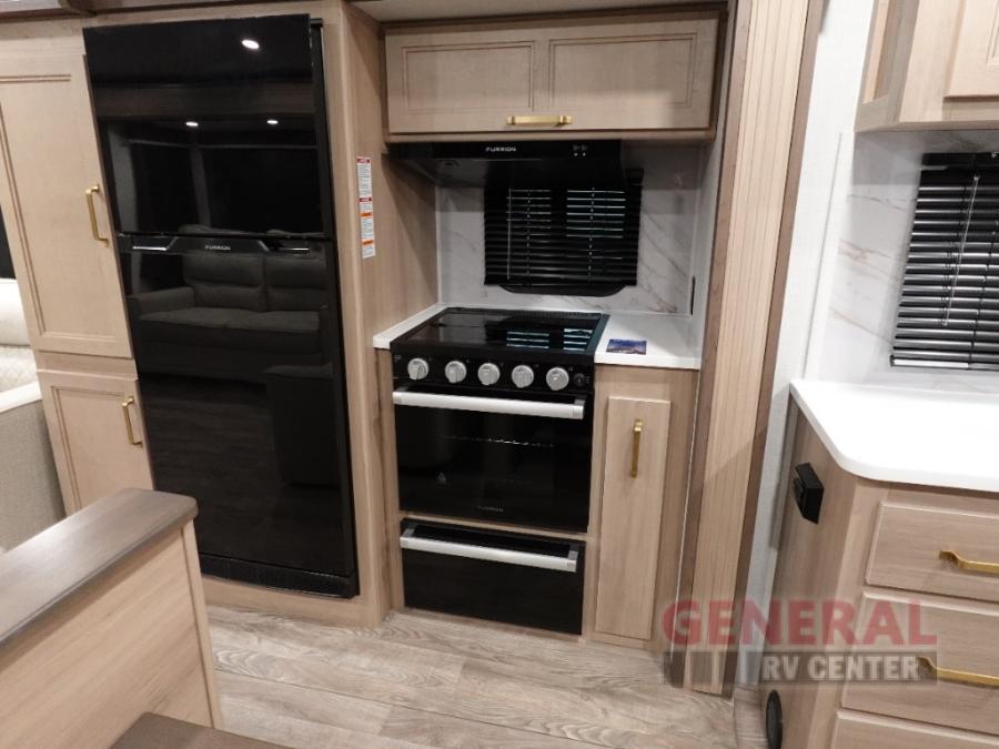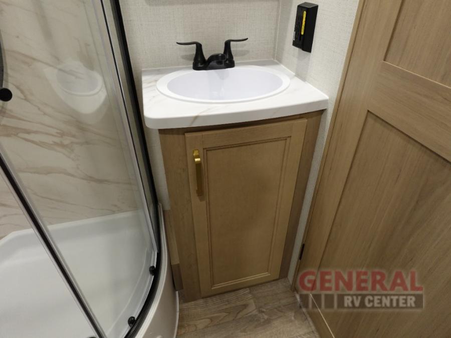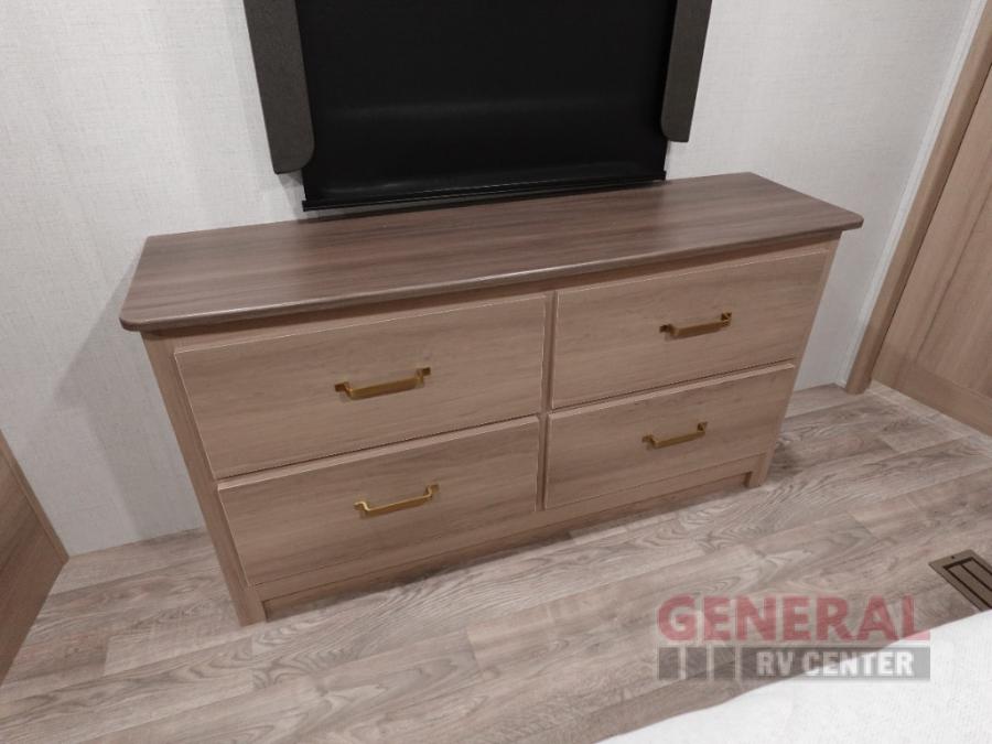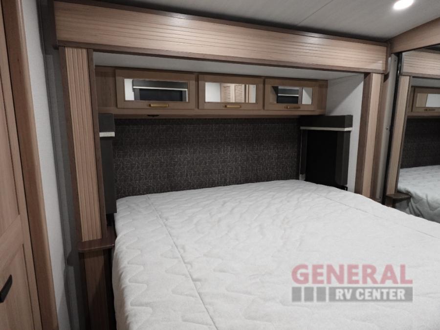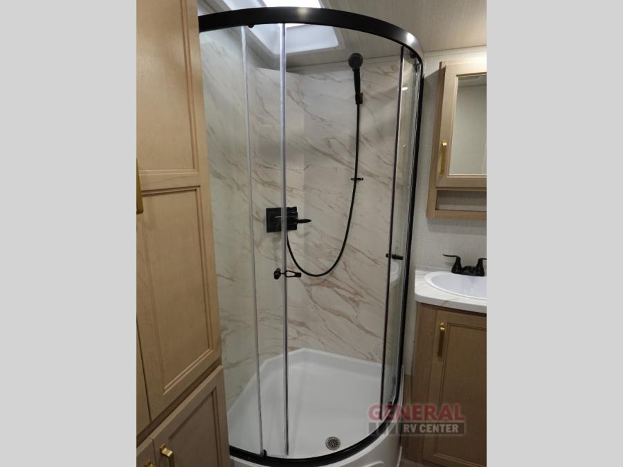 With a rear entertainment center including a 55" HDTV with fireplace below, and dual sofa sleeper slides, you will enjoy a spacious living area to visit with friends while you sit on the theater seats. The middle kitchen offers full amenities including a pantry and 10 cu. ft. refrigerator to store lots of food to feed everyone. The bench dinette seating allows you to dine or work in this area. Everyone will appreciate easy access to the double entry bathroom, especially you when it's nighttime and you are sleeping on the king bed slide out. Your family pet will have their own space, and you will find plenty of storage choices, plus there is washer/dryer prep if you want to the option to make laundry day easier.