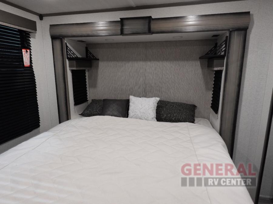 This double slide destination trailer is sure to meet all of your expectations! The front living area includes a sectional sofa where your crew can get comfy on while watching a movie. Once everyone is ready for dinner, the full kitchen includes a cooktop just like you'd find at home, plus there is a microwave oven. The pantry and refrigerator will hold all your food, and the kitchen island with four stools provides a place to dine at. This model includes a spacious full bath, complete with a shower with a seat and a linen closet for clean towels. The stairs right next to the bath lead up to the rear loft and here you'll enjoy two 39" x 74" beds, an entertainment center, plus a nightstand and a wardrobe for plenty of storage space. And don't overlook the rear bedroom under the loft that includes a king bed slide out, dresser, master closet, plus washer and dryer prep if you plan to add those appliances!