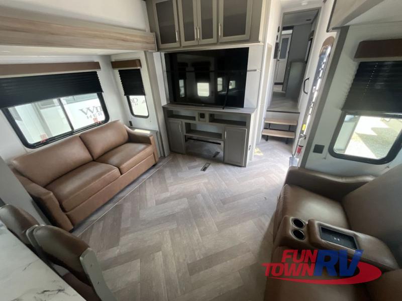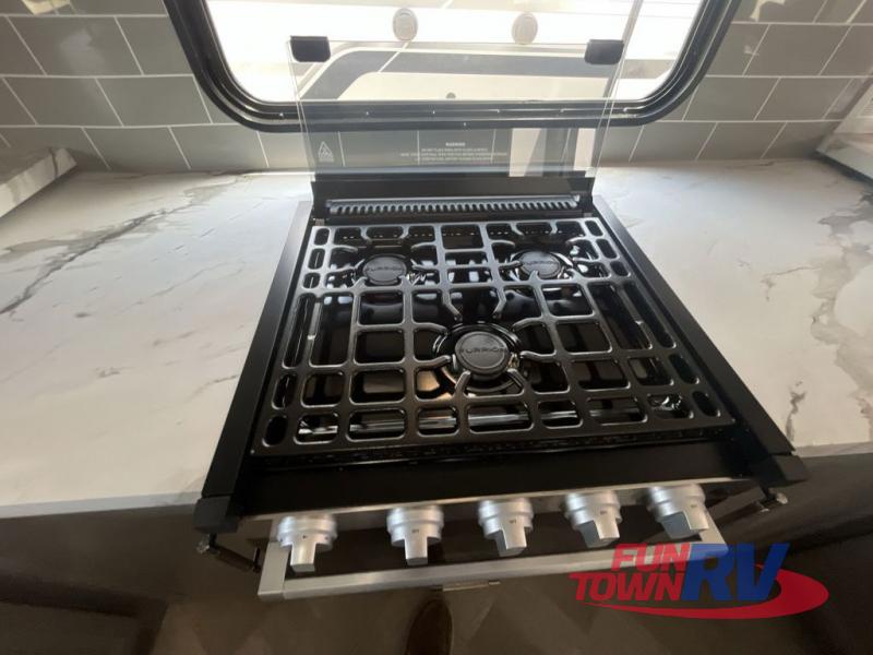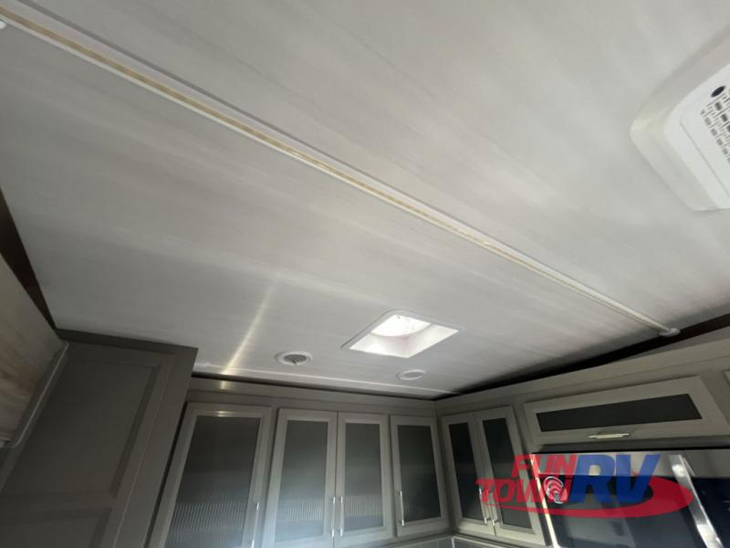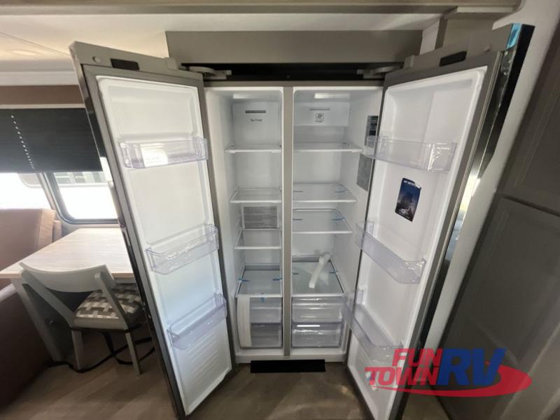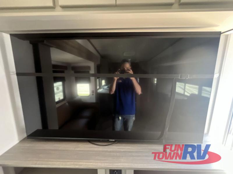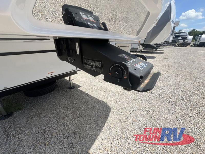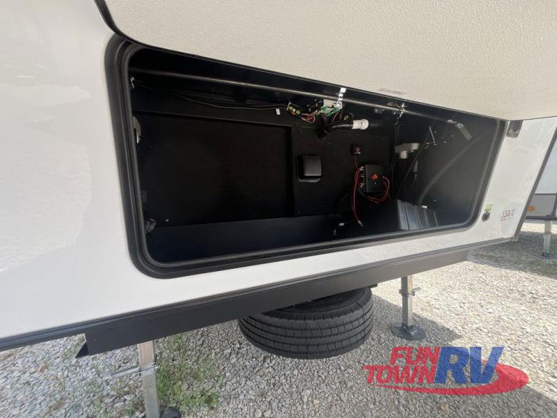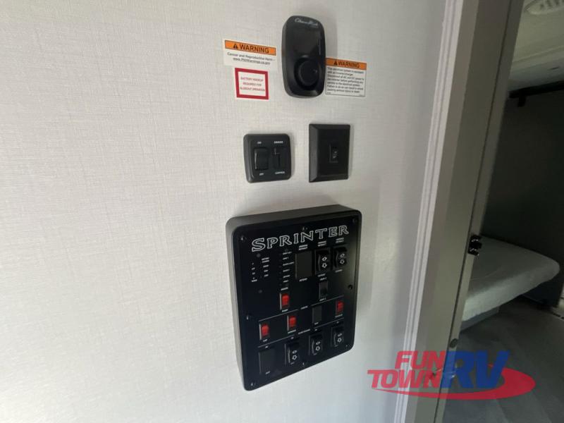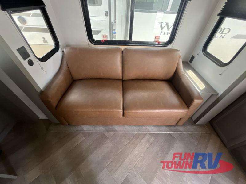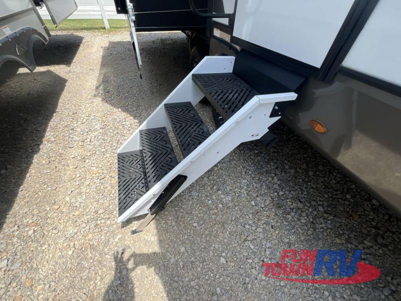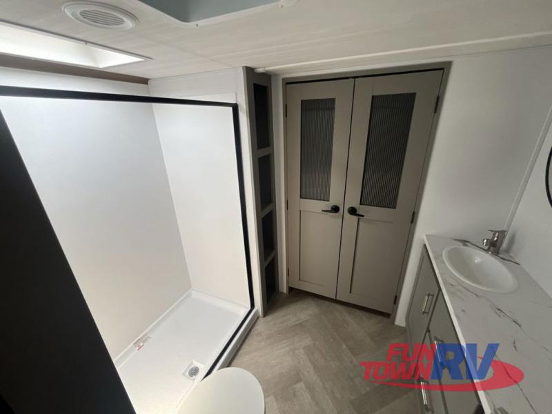 The Sprinter fifth wheels by Keystone feature spacious living areas, plenty of storage, and outstanding towability. Each unit is constructed with 2" aluminum framed and laminated sidewalls, a fully walkable roof, and dual layer insulation to help extend your camping season. The heated pass-through storage includes lockable slam latch baggage doors so you can easily pack your gear, and the one-touch 4-point leveling system features return hookup memory to have you set up in no-time. Head inside to find Congoleum vinyl flooring, Thomas Payne luxury collection furniture, residential style seamless marbled countertops, and an upgraded bedspread to name a few comforts. The Sprinter also includes a Girard tankless on-demand water heater, a central command center, plus a 30k BTU furnace and two A/C units to ensure your comfort!