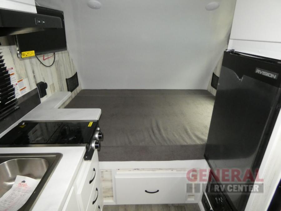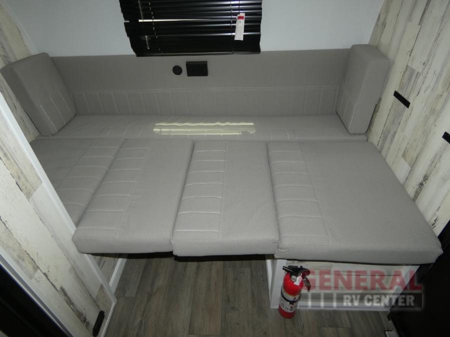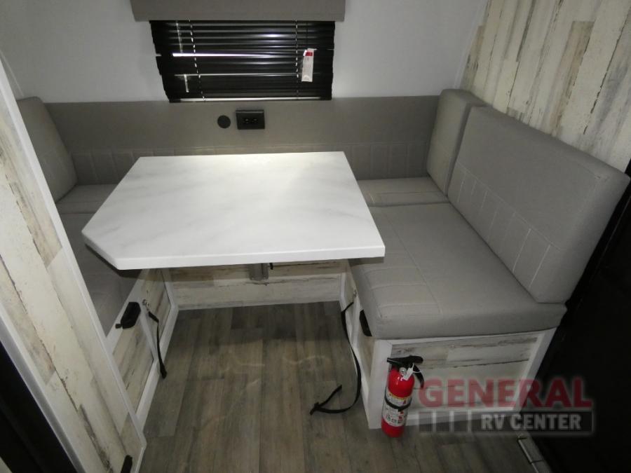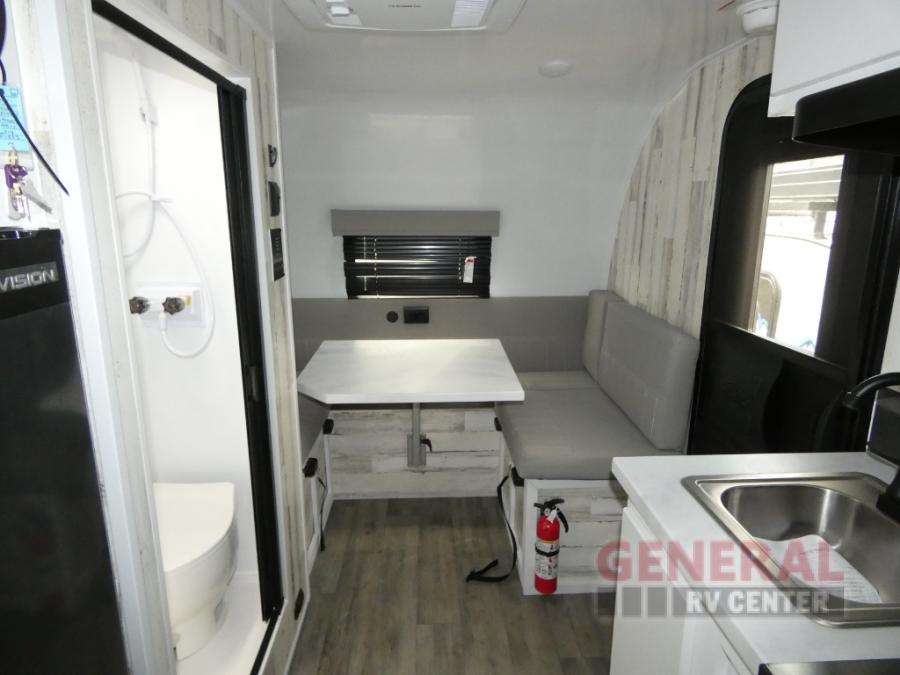 If you're looking for a teardrop trailer with a little more space, check out this Big Buggy BB14! There is a front U-shaped dinette that can convert to cozy sleeping space, a two burner stove, plus a large 12V refrigerator. You can clean up each day in the wet bath that includes a two way bath vent fan plus a Dometic toilet. The exterior baggage door will keep all your gear secure, and the torsion axle will provide smooth towing from home to campground.