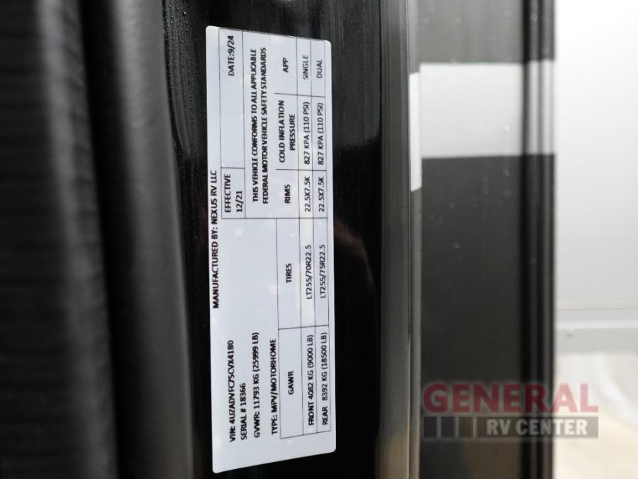 If you're looking for quality, safety, and luxury in a motorhome, look no further than one of these NeXus RV Wraith Super C diesel motorhomes! A Freightliner S2 RV chassis holds them together and a 6.7L 340 HP Cummins ISB diesel engine coupled with a 6-speed Allison transmission powers them. They have a best in class "all steel-composite" that is up to 72% stronger for safer rides and the steel in the superstructure helps minimize potential water damage while also maximizing the thermal and sound insulation. Experience at-home touches like a deluxe innerspring mattress, upgraded flooring, solid surface kitchen countertops, and night roller shades for privacy. You will be able to enjoy endless hot showers with an on-demand hot water heater, and the 6.0 Onan diesel generator will keep you powered up for every adventure. Outside, you'll love the look of the deluxe 4-color full body paint, and the frameless windows with automotive seal will help keep the elements out.