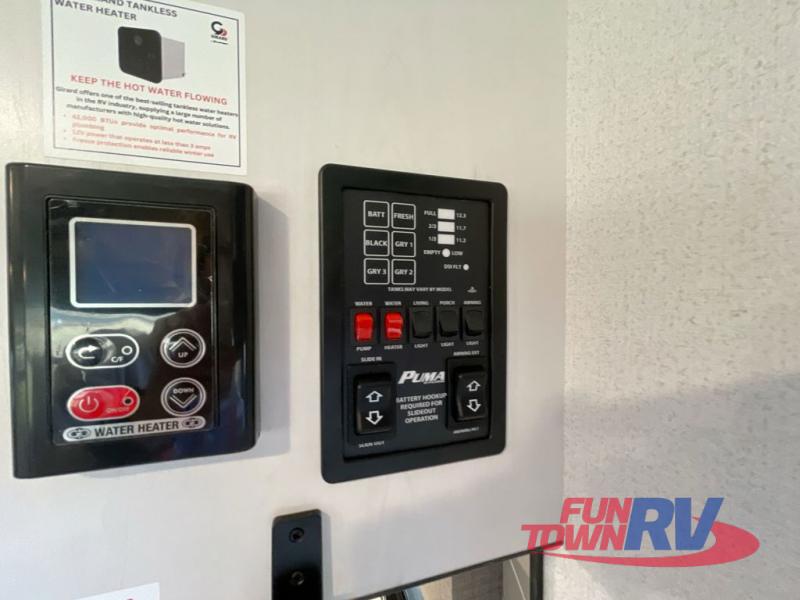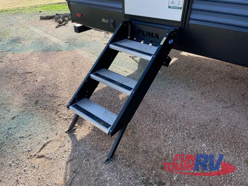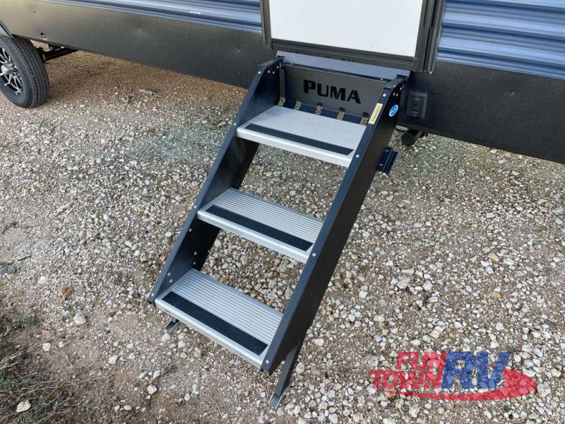 If you're looking for family-fun adventures then you need one of these Palomino Puma fifth wheels or travel trailers! They are built rugged, easy to tow, and jam packed with features. The Darco wrapped underbelly will protect your units vitals through every season and the AlphaPly roofing membrane covers it. They also have new aluminum wheels and a powder coated steel I-beam frame. Inside, the Congoleum linoleum will be easy to keep clean, and the night roller shades will provide privacy when it's time to turn in. You'll also enjoy an electric awning with an LED light strip plus an AM/FM/Bluetooth stereo and two outside speakers to keep the party going!