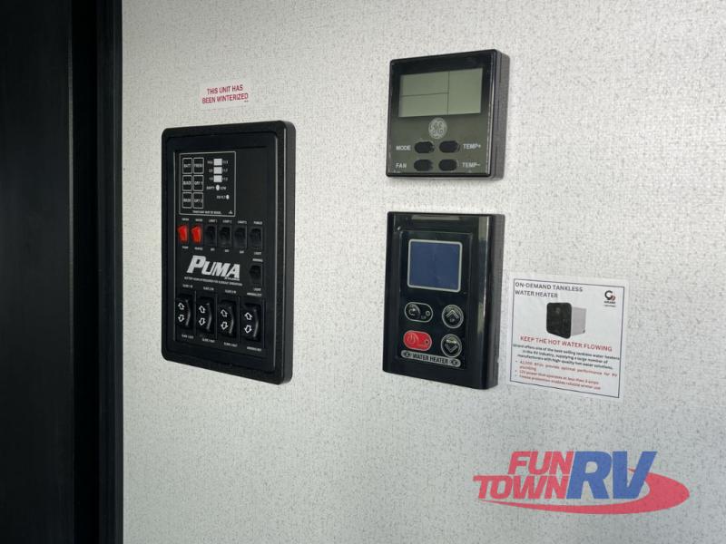 Each Puma Destination trailer by Palomino is designed to give you unforgettable getaways to the destination of your choice! The Value Shopper Package features Congoleum linoleum, LED lighting, an AM/FM/Bluetooth stereo, and an upgraded kitchen faucet to name a few comforts. Two exterior speakers are included with the required Marquis Edition, along with solid surface countertops, night roller shades, an outside shower, and four stabilizer jacks to help keep your unit secure. You will also appreciate the roof and side mount solar prep for off-grid capabilities, as well as WiFi prep if you need the option to work while you're away from home!