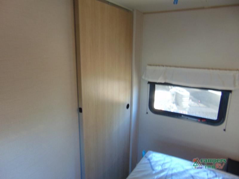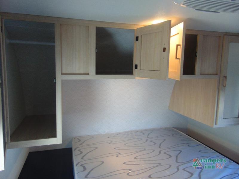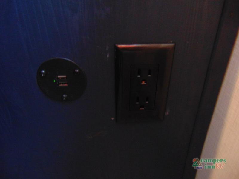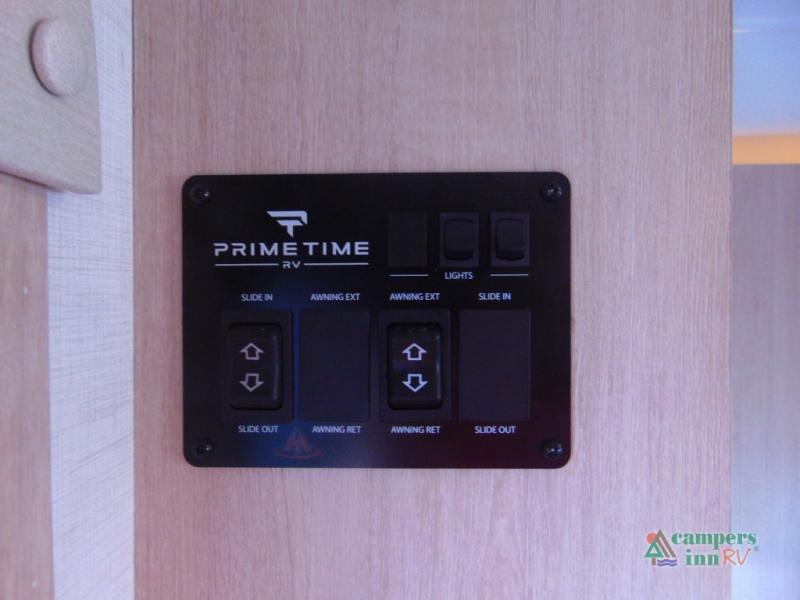 With any Avenger travel trailer by Prime Time, the exterior includes an aerodynamic smooth front metal, a diamond plate front rock guard for protection on the road, and four stabilizer jacks to keep your unit secure. There is a fully walkable roof plus an enclosed and heated underbelly that will help extend your camping season. The interior offers a 15,000 BTU air conditioner for the perfect climate inside, in-floor ducted heat, a systems monitor panel, and a Winegard 360+ antenna with Wi-Fi prep that will give you the option to stay connected as you camp. Each model also includes seamless Carefree Congoleum flooring, kitchen backsplash, shower pans in all models, and pleated nightshades throughout to name a few interior comforts!