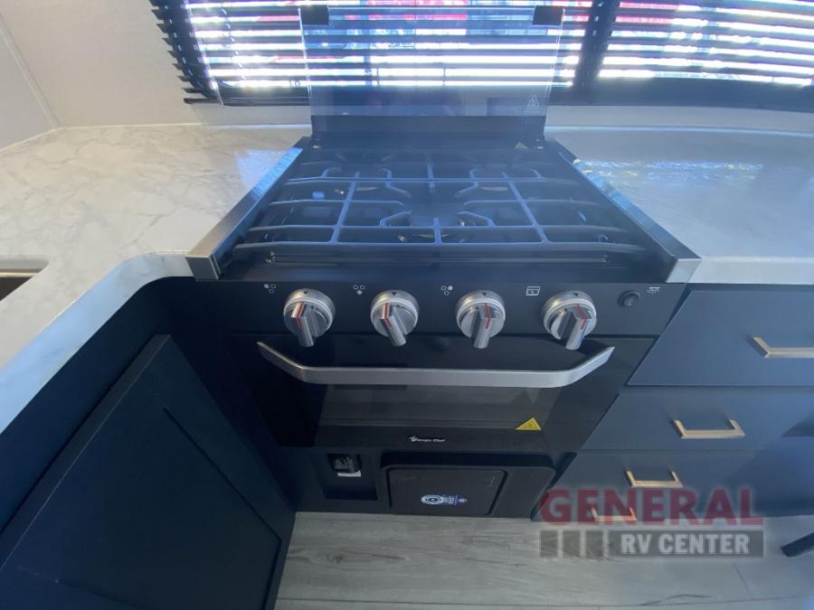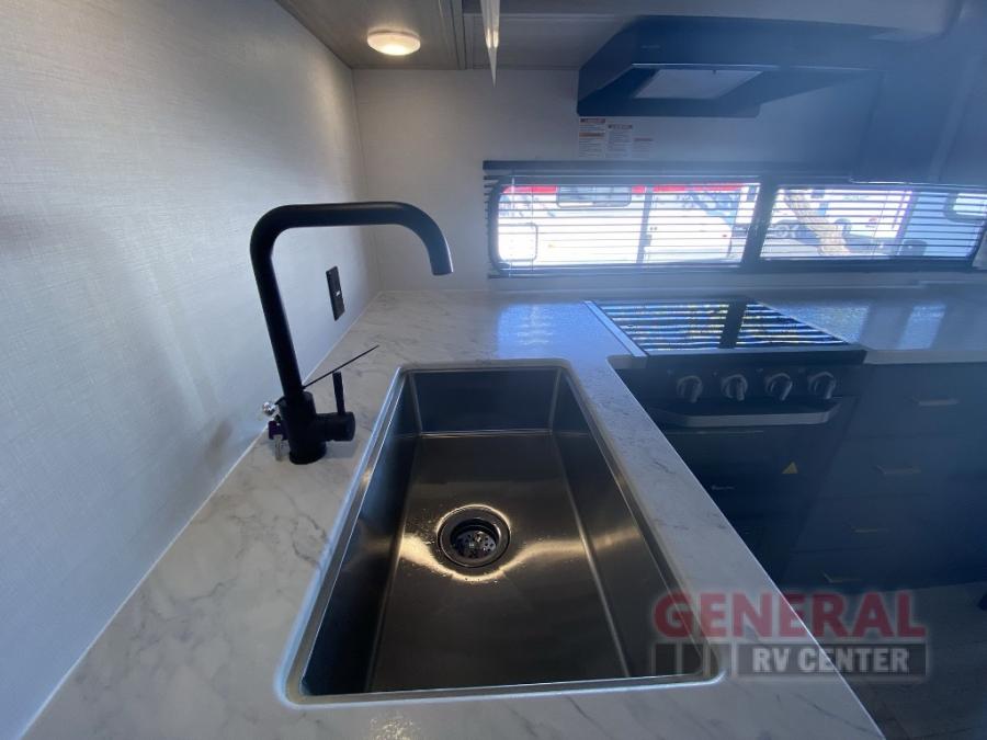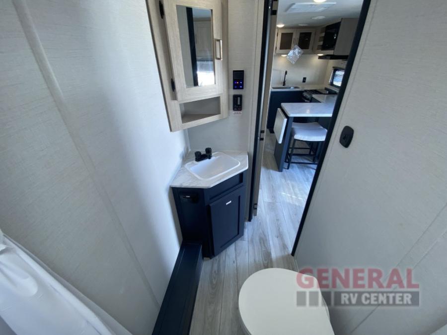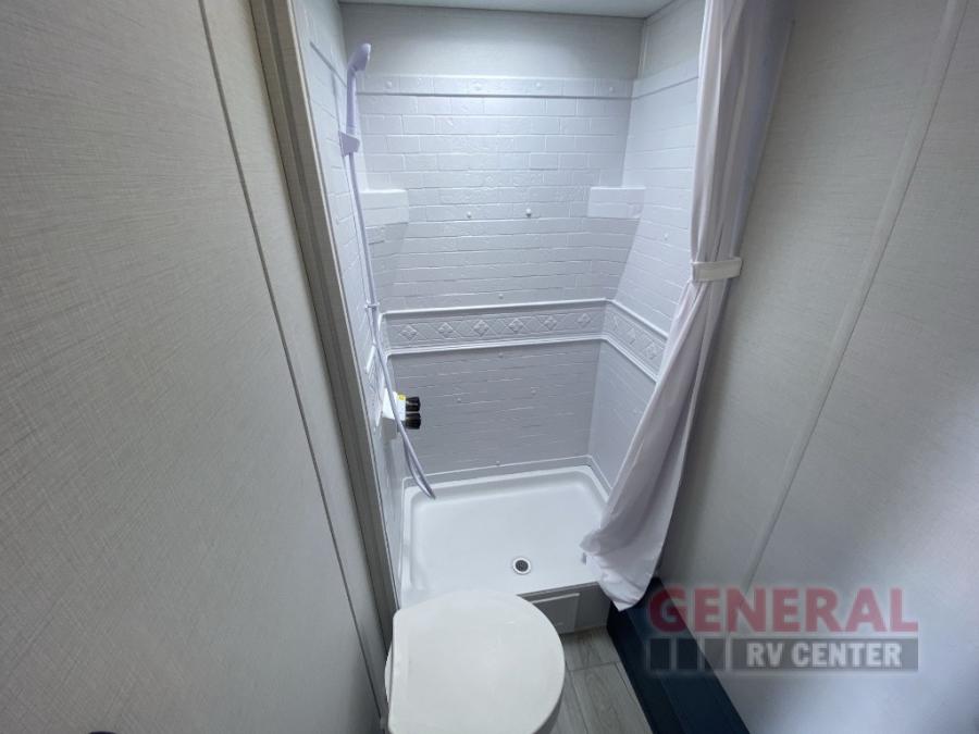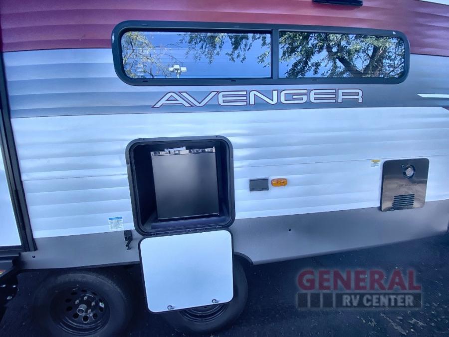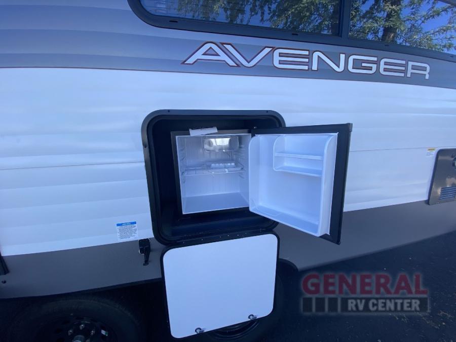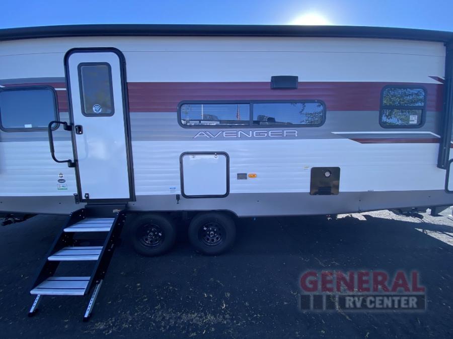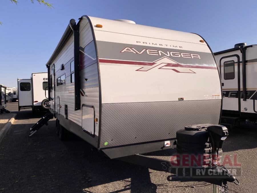 With any Avenger travel trailer by Prime Time, the exterior includes an aerodynamic smooth front metal, a diamond plate front rock guard for protection on the road, and four stabilizer jacks to keep your unit secure. There is a fully walkable roof plus an enclosed and heated underbelly that will help extend your camping season. The interior offers a 15,000 BTU air conditioner for the perfect climate inside, in-floor ducted heat, a systems monitor panel, and a Winegard 360+ antenna with Wi-Fi prep that will give you the option to stay connected as you camp. Each model also includes seamless Carefree Congoleum flooring, kitchen backsplash, shower pans in all models, and pleated nightshades throughout to name a few interior comforts!