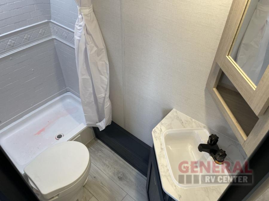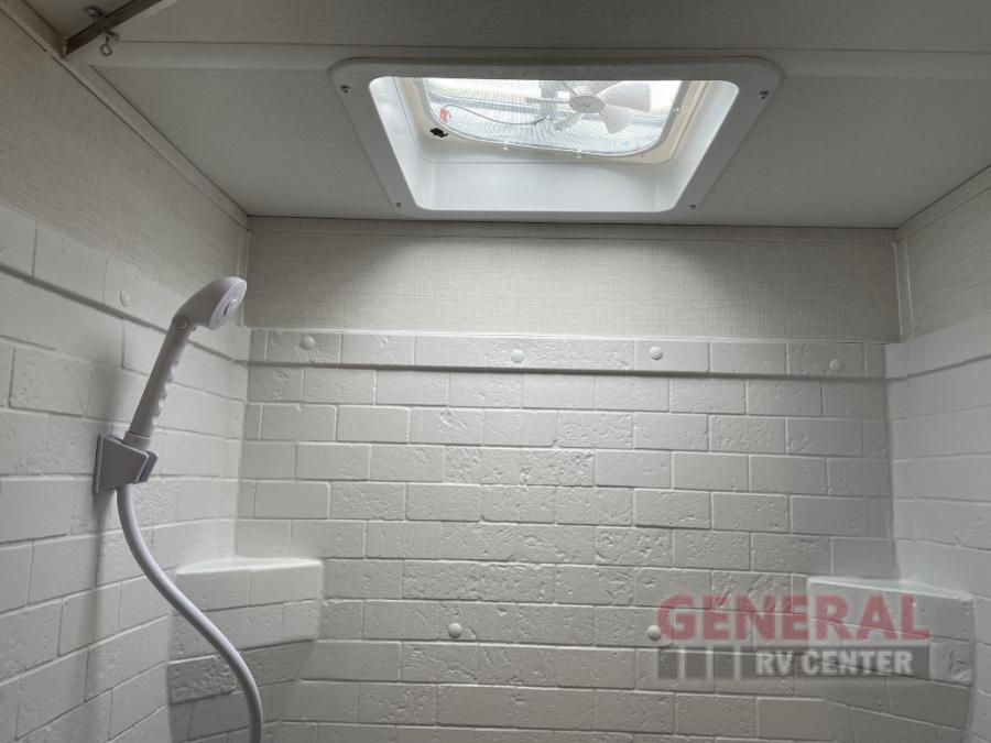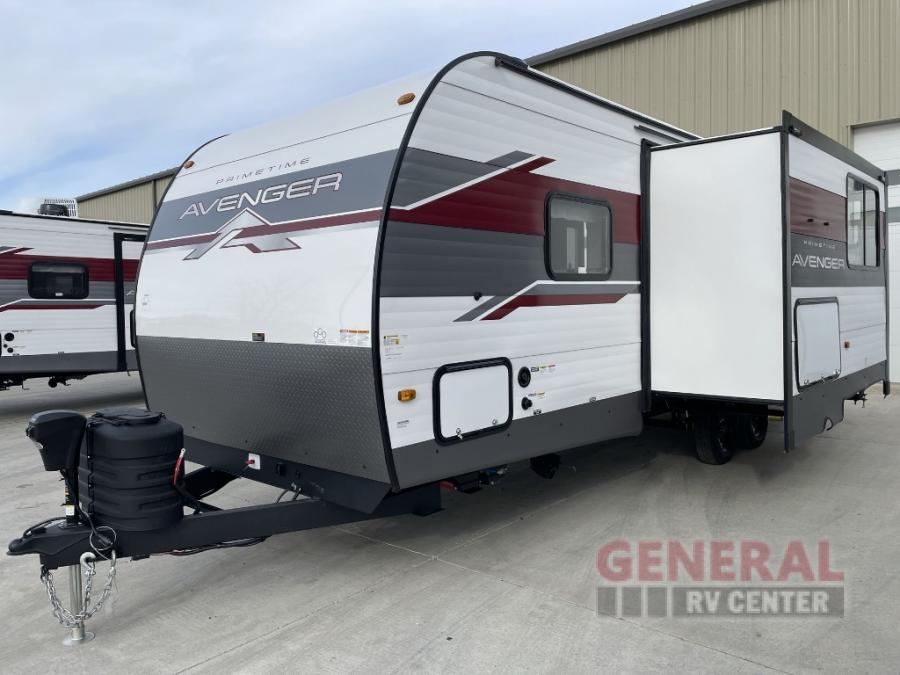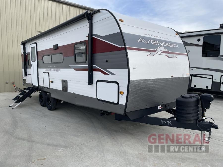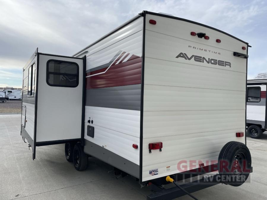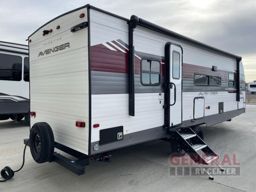 With any Avenger travel trailer by Prime Time, the exterior includes an aerodynamic smooth front metal, a diamond plate front rock guard for protection on the road, and four stabilizer jacks to keep your unit secure. There is a fully walkable roof plus an enclosed and heated underbelly that will help extend your camping season. The interior offers a 15,000 BTU air conditioner for the perfect climate inside, in-floor ducted heat, a systems monitor panel, and a Winegard 360+ antenna with Wi-Fi prep that will give you the option to stay connected as you camp. Each model also includes seamless Carefree Congoleum flooring, kitchen backsplash, shower pans in all models, and pleated nightshades throughout to name a few interior comforts!