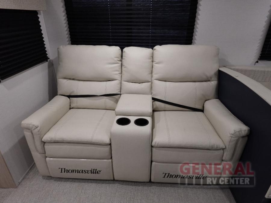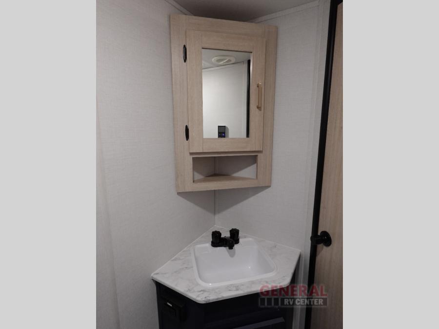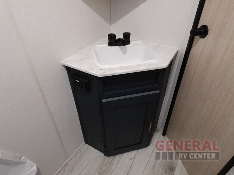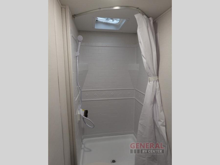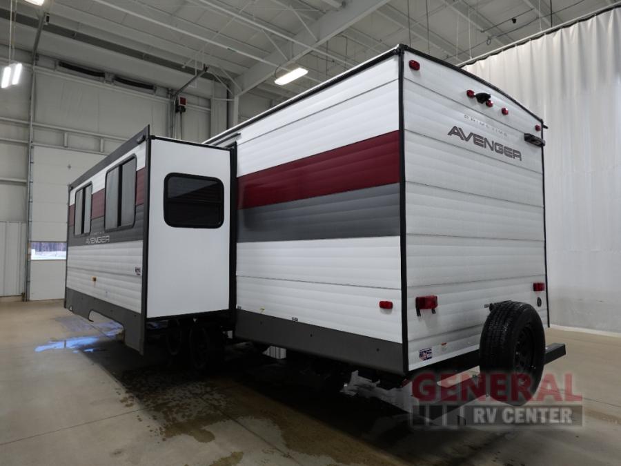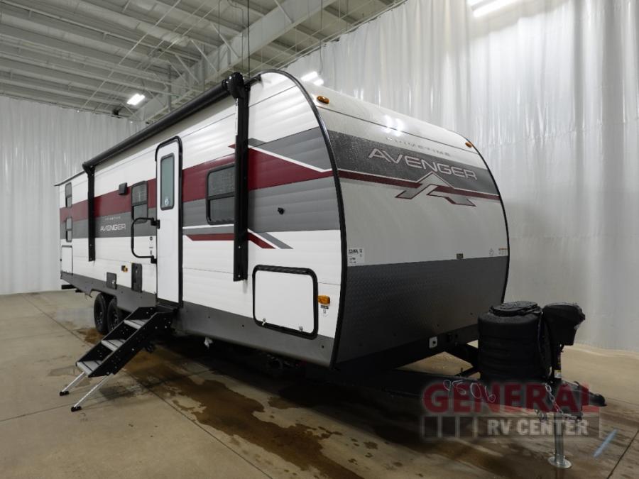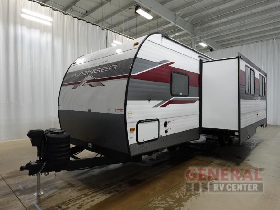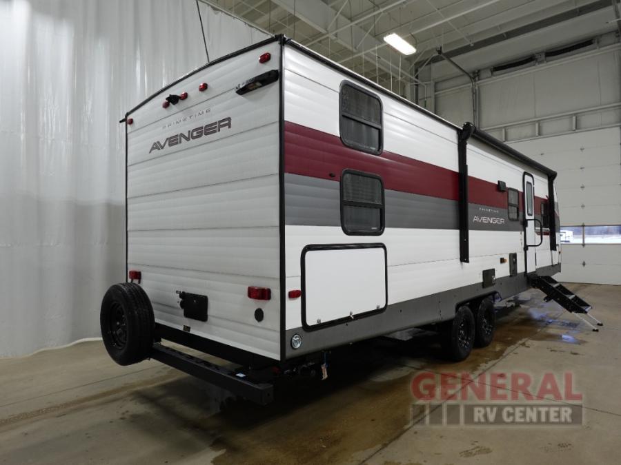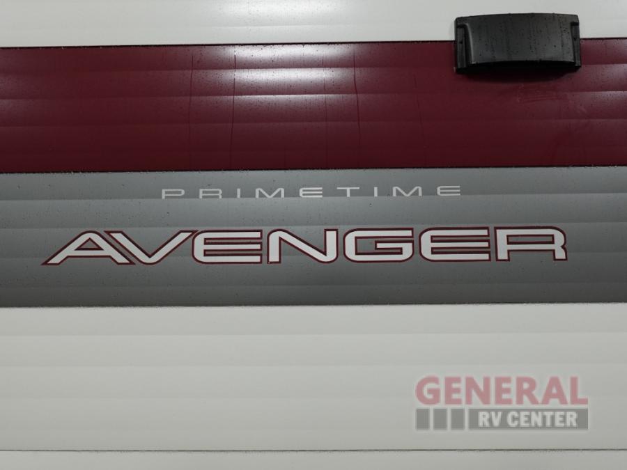 With any Avenger travel trailer by Prime Time, the exterior includes an aerodynamic smooth front metal, a diamond plate front rock guard for protection on the road, and four stabilizer jacks to keep your unit secure. There is a fully walkable roof plus an enclosed and heated underbelly that will help extend your camping season. The interior offers a 15,000 BTU air conditioner for the perfect climate inside, in-floor ducted heat, a systems monitor panel, and a Winegard 360+ antenna with Wi-Fi prep that will give you the option to stay connected as you camp. Each model also includes seamless Carefree Congoleum flooring, kitchen backsplash, shower pans in all models, and pleated nightshades throughout to name a few interior comforts!