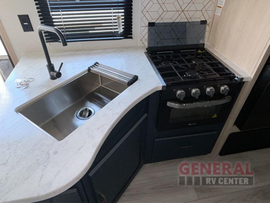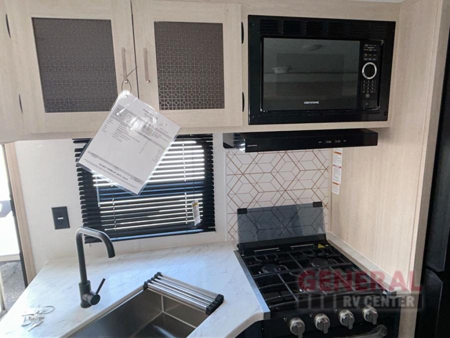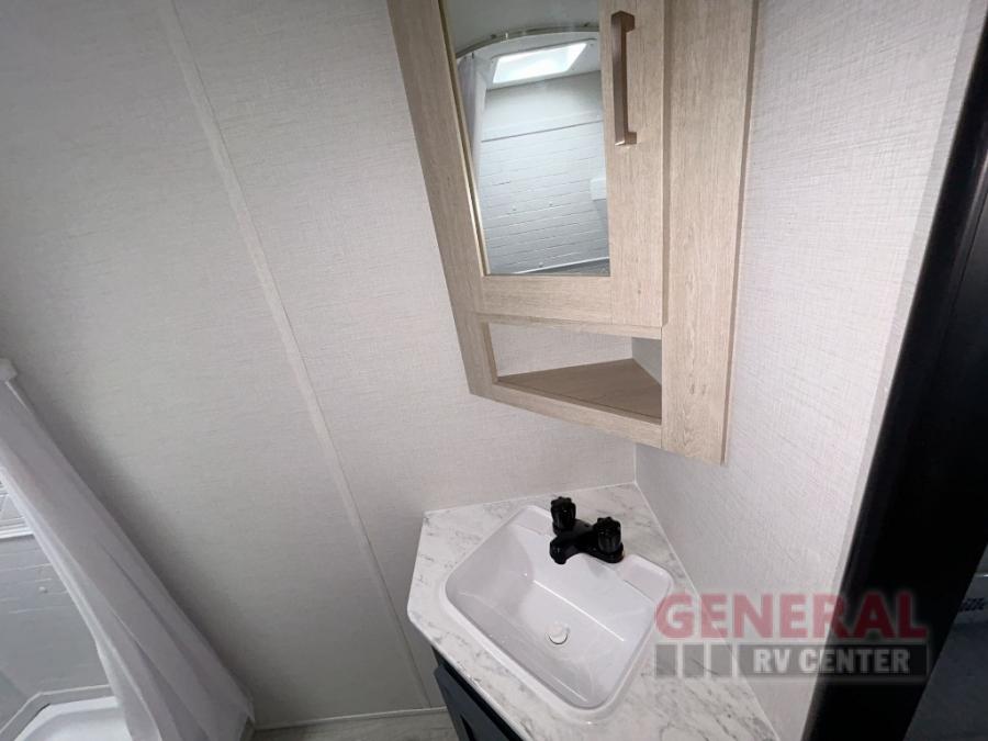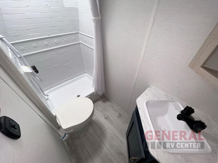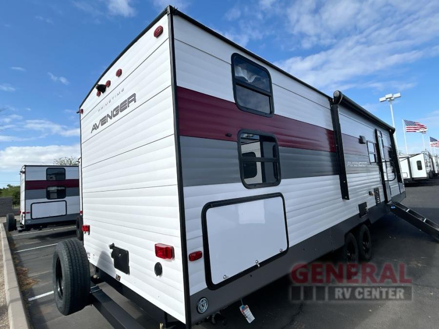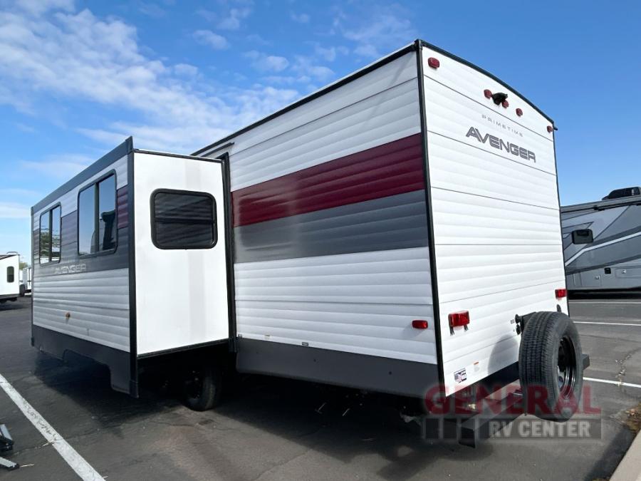 With any Avenger travel trailer by Prime Time, the exterior includes an aerodynamic smooth front metal, a diamond plate front rock guard for protection on the road, and four stabilizer jacks to keep your unit secure. There is a fully walkable roof plus an enclosed and heated underbelly that will help extend your camping season. The interior offers a 15,000 BTU air conditioner for the perfect climate inside, in-floor ducted heat, a systems monitor panel, and a Winegard 360+ antenna with Wi-Fi prep that will give you the option to stay connected as you camp. Each model also includes seamless Carefree Congoleum flooring, kitchen backsplash, shower pans in all models, and pleated nightshades throughout to name a few interior comforts!