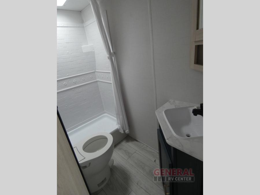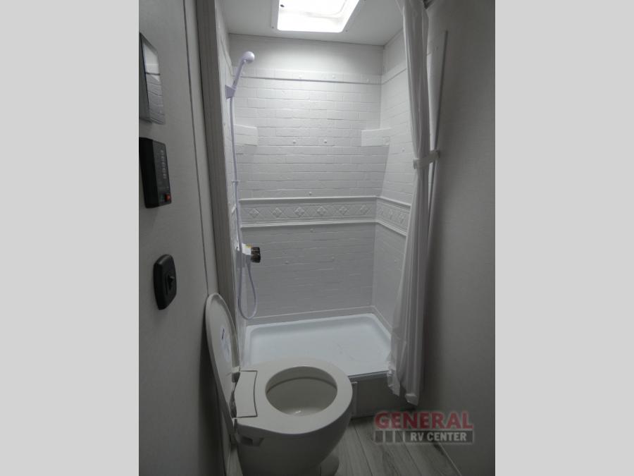With any Avenger travel trailer by Prime Time, the exterior includes an aerodynamic smooth front metal, a diamond plate front rock guard for protection on the road, and four stabilizer jacks to keep your unit secure. There is a fully walkable roof plus an enclosed and heated underbelly that will help extend your camping season. The interior offers a 15,000 BTU air conditioner for the perfect climate inside, in-floor ducted heat, a systems monitor panel, and a Winegard 360+ antenna with Wi-Fi prep that will give you the option to stay connected as you camp. Each model also includes seamless Carefree Congoleum flooring, kitchen backsplash, shower pans in all models, and pleated nightshades throughout to name a few interior comforts!