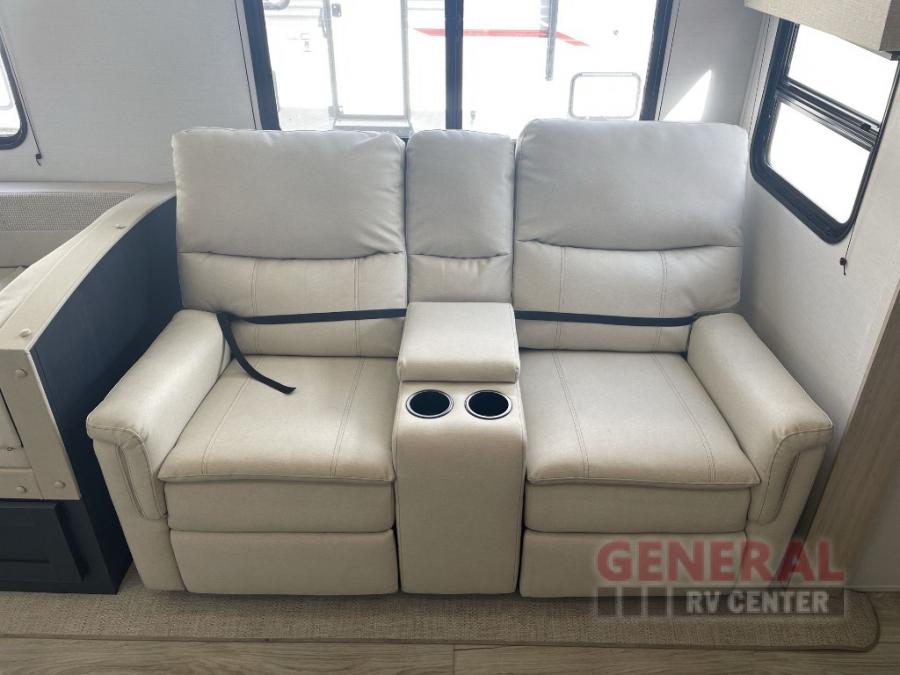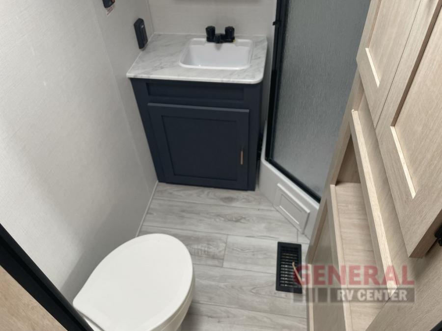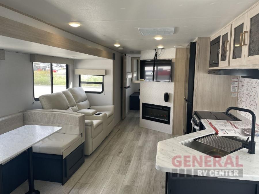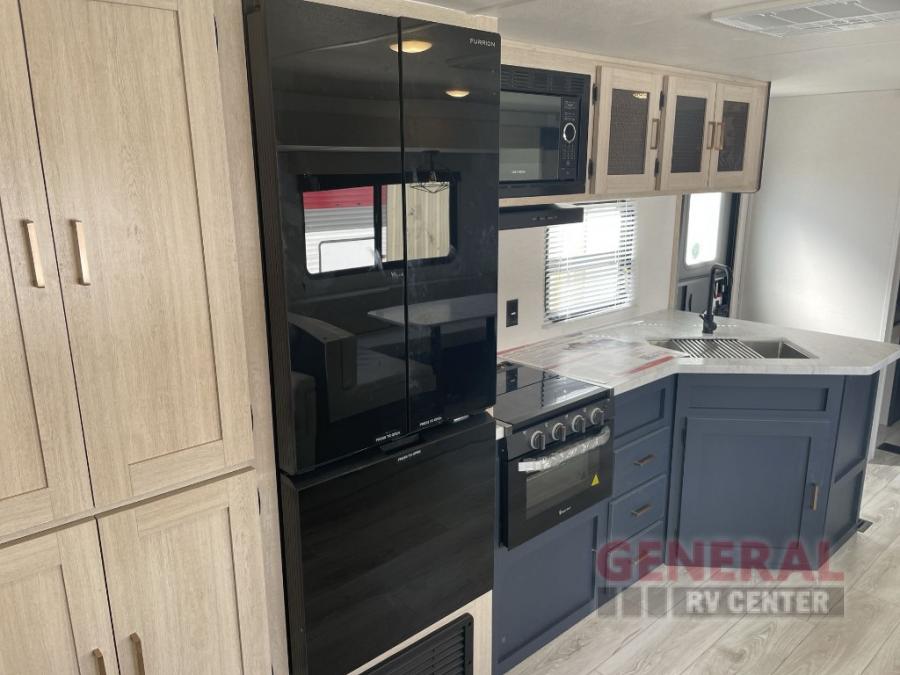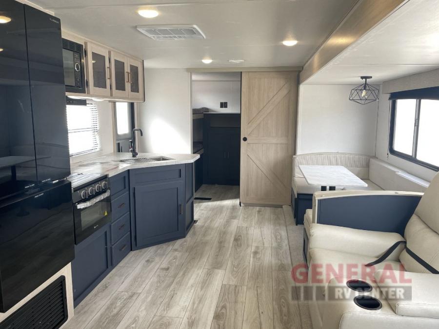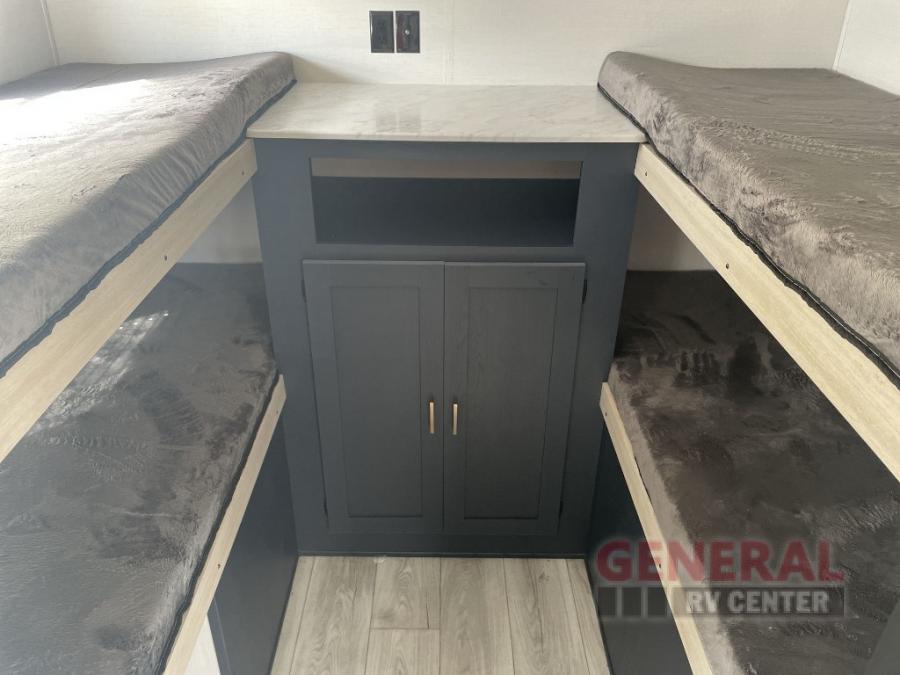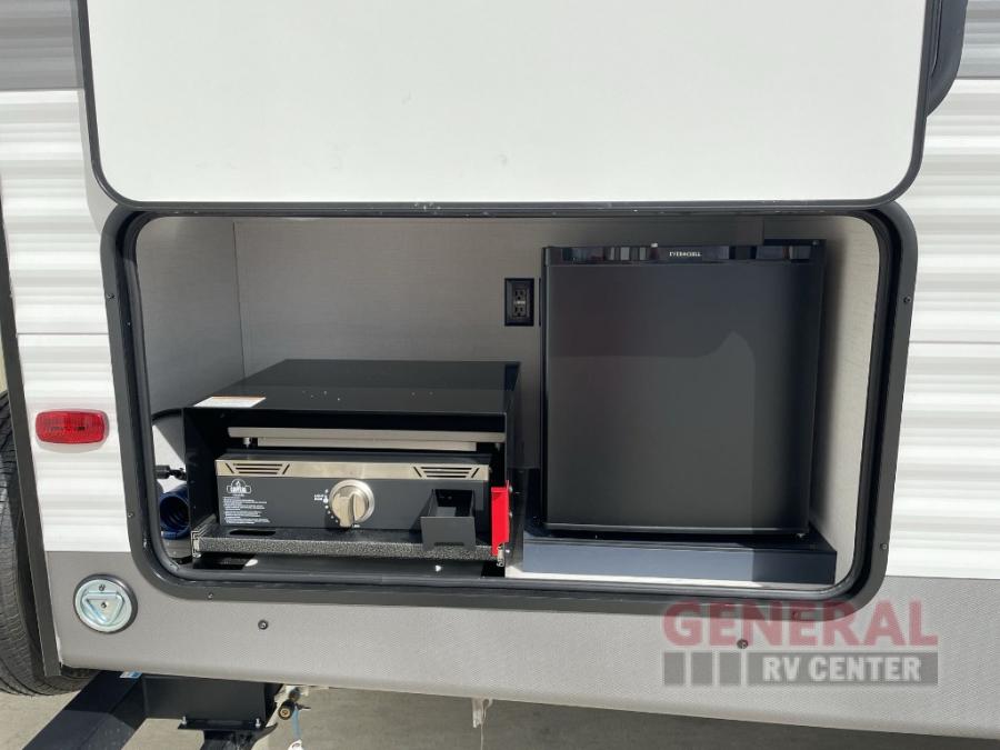 Start planning your trip now with your whole group in mind and this trailer at the campsite! There is a private bunkhouse with four bunks and a wardrobe for the kids or your guests and a queen-size bed in the master suite with easy access to the dual entry bath. The full kitchen will give you everything you need to prepare hearty meals to fill your empty bellies, and if you prefer to stay outside until the last light of day, the outdoor griddle will be even more handy for meal preparations. And everyone can relax under the 19' LED lit adjustable power awning as you plan your next activity or meal.