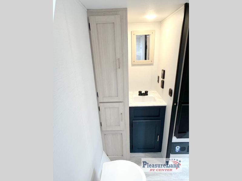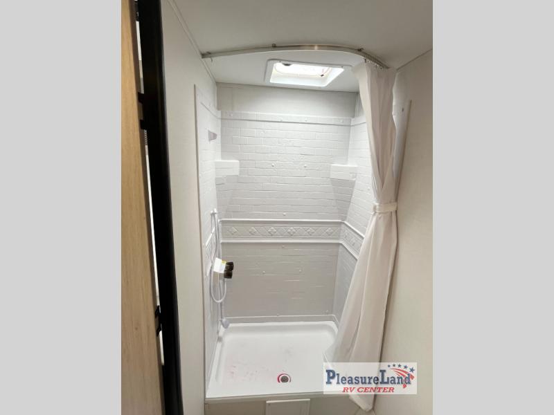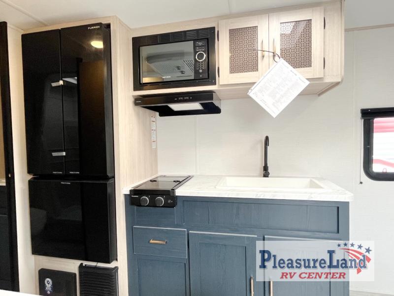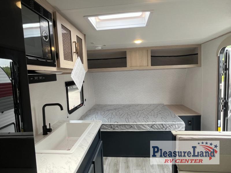 You'll love spending time outdoors with the LED-lit power awning. When you get tired from your day of hiking, relax on the front bed with dual wardrobes and overhead cabinets to hold your clothing and such. And you'll appreciate the extra lighting from the kitchen skylight as you cook with the two-burner cooktop or microwave.