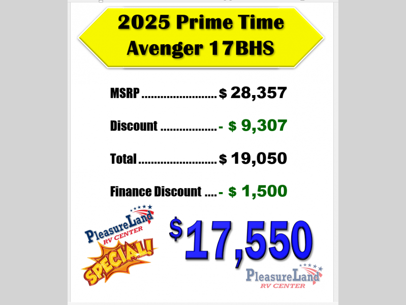 Prime Time Avenger LT travel trailer 17BHS highlights: