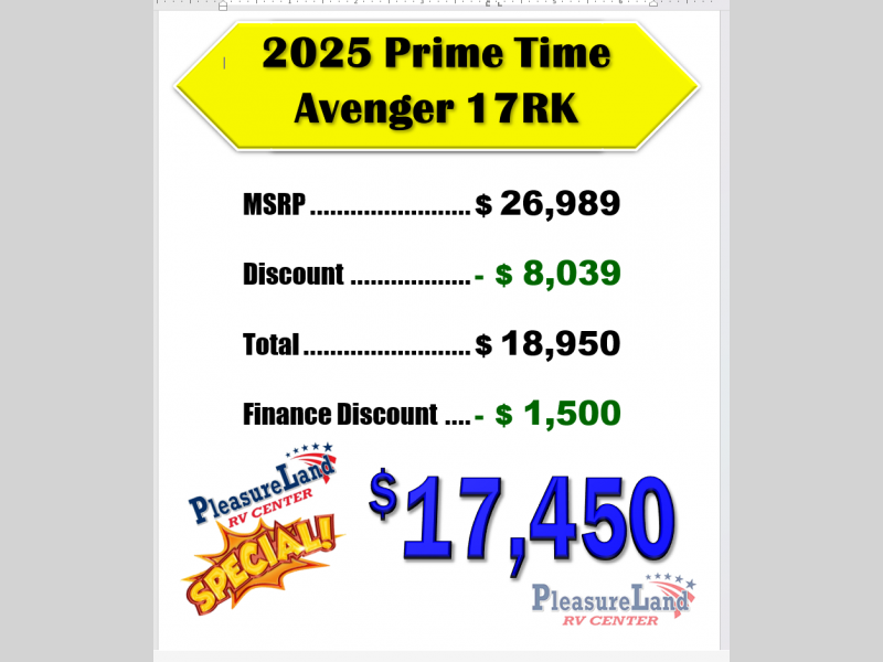 Prime Time Avenger LT travel trailer 17RK highlights:
