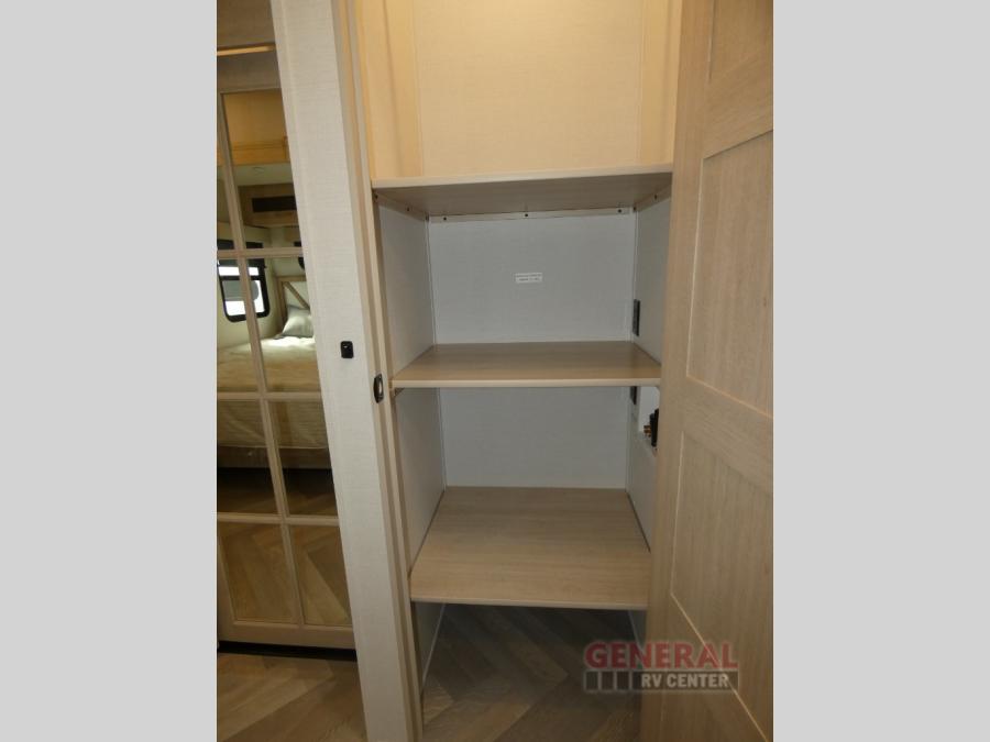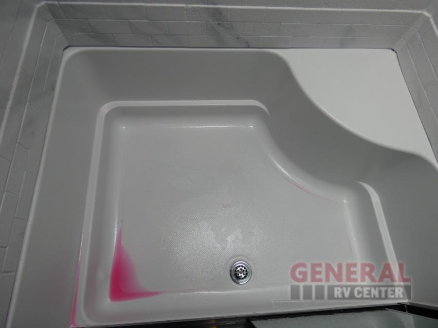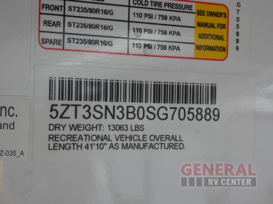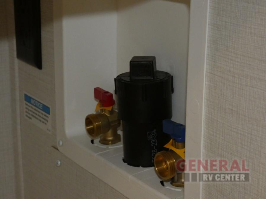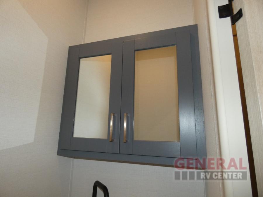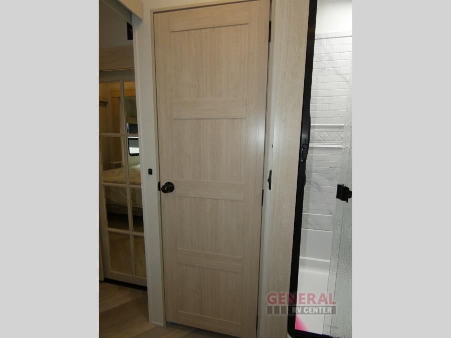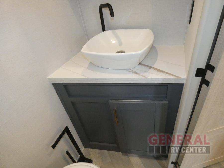 It's a clean decision with a bath and a half to take this fifth wheel on your next adventure! The front living area includes opposing EZ glide couches, 65" theater seating, and a front entertainment with a Smart LED pop up TV and fireplace for a cozy evening indoors. Prepare meals on the four burner cooktop, and leftovers can go in the 16 cu. ft. French door 12V refrigerator. You and your spouse will love the master suite that includes a king bed slide, plenty of storage space, and an entrance into the full rear bathroom with a dual sink vanity. There is even a linen closet with washer and dryer prep if you want to add those appliances!