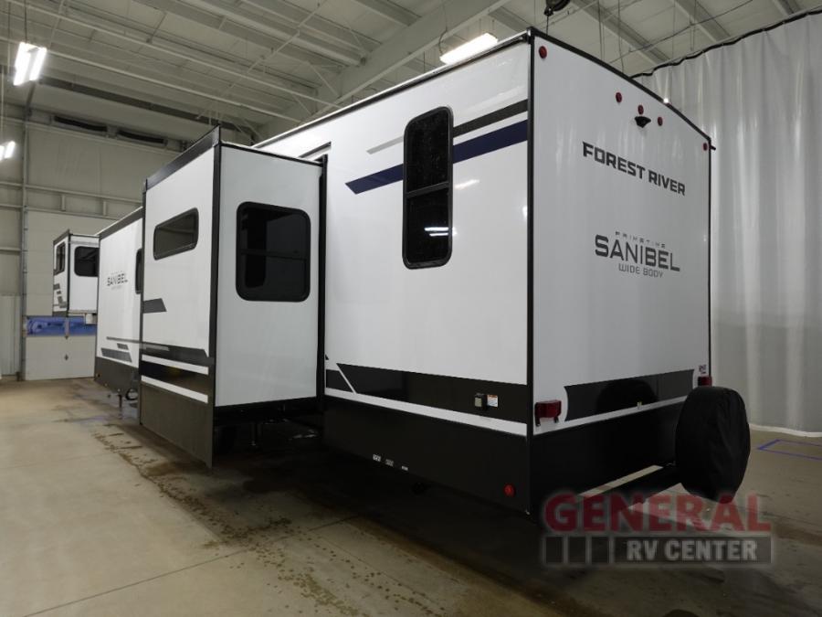More luxury and more value is what you will find in each one of these Prime Time RV Sanibel fifth wheels! The Extreme Thermal package allows you to extend your camping season by including high density block foam insulation throughout, heated basement storage, and 12V heating pads on tanks. You can keep the party going with the electric awning with LED lighting and high-output exterior speaker, plus there is a Doggy D-Ring and bottle opener for added convenience. Each model also includes Dexter E-Z FLEX rubberized suspension to provide smooth towing on tougher roads, thick insulated pass-through baggage doors, and a high gloss gel coated exterior fiberglass for a more sleek look. Inside, you will enjoy residentially inspired kitchen appliances, real wood cabinet doors, designer Carefree linoleum with Scotchgard Technology, and many more luxurious features!