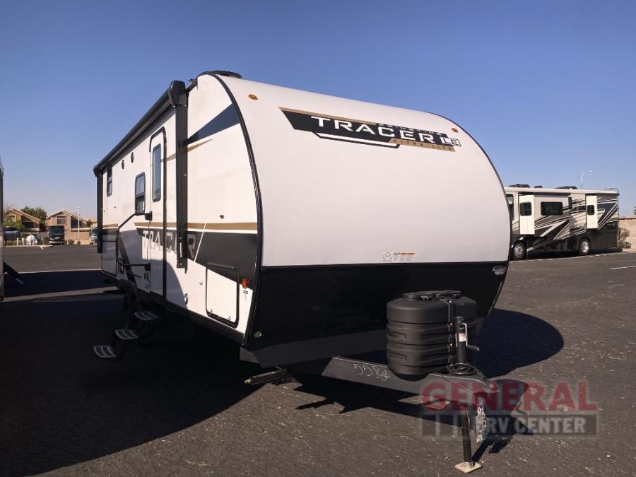 Each Tracer LE travel trailer by Prime Time is made to last with its Eternabond construction, and there is a power awning with LED lights for an inviting outdoor living space. There is a manual tongue jack and manual stabilizer jacks outside, along with an XL grab handle and steel entry steps to provide a sturdy entrance and exit into your trailer. You will fall in love with the interior that includes LED lighting, a stainless steel galley sink, a 15k BTU A/C, and a soundbar to listen to your favorite tunes. You will also love the Tracer LE Solar Package that comes with a 200W solar panel, a 40A MPPT charge controller, and a solar disconnect switch for off-grid capabilities!