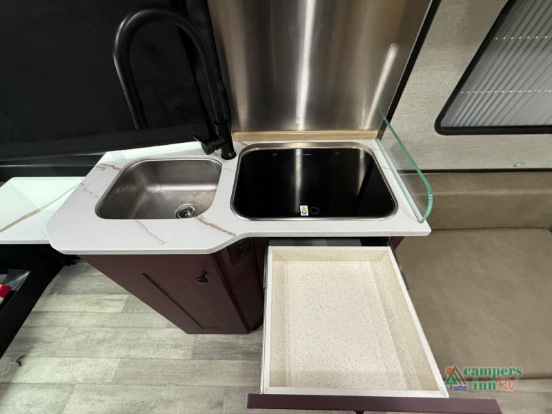 The Roadtrek Class B gas motorhomes are built upon the stylish Ram ProMaster 3500 chassis with a 3.6L V6 gas engine to power your trips near and far. The Uconnect 5 HD radio with Apple Car Play and Android Auto will make the drive just as sweet as the destination. Each model includes a 12V refrigerator, a two-burner recessed propane stove with a flush cover and built-in igniter, and ample storage space for all your belongings. There is evenĀ an outdoor shower to rinse the dirt off your feet before entering inside, and a retractable awning to protect you rain or shine. Come find your favorite one today!