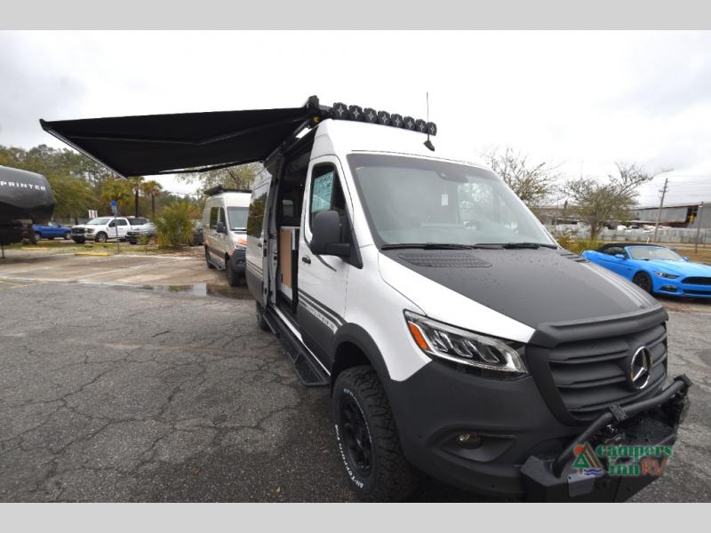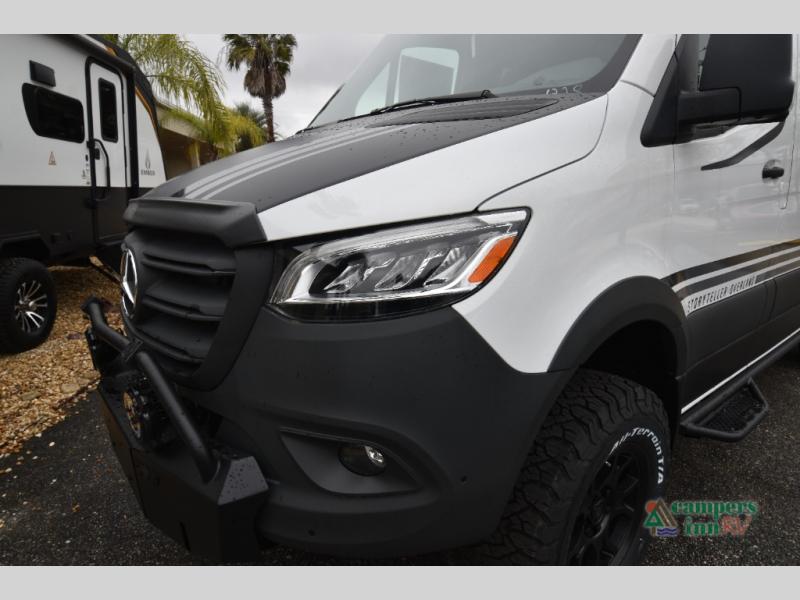 Live free, explore endlessly, and tell better stories with the Storyteller Overland Class B diesel van! With an all-wheel drive and diesel engine, the Storyteller Overland MODE OG models are always ready to go whenever you are! You can travel with complete peace of mind knowing that each van meets all of the qualifications for the various and rigorous safety tests, so it is safe. But the Storyteller Overland is also fun and rugged with its tubular side-mount ladder, rugged roof rack with sonic wedge deflector, powered awning with dimmable LED lights, portable toilet, outside shower, and portable Bluetooth speaker. The HALO shower conveniently stores in a cabinet and includes a shower head and curtain that can be rolled up and stored when not in use, providing you with more living space! Additional features include an M-Power energy system powered by Lithionics, a slimmer galley and wider hallway, and convenient bug screens!