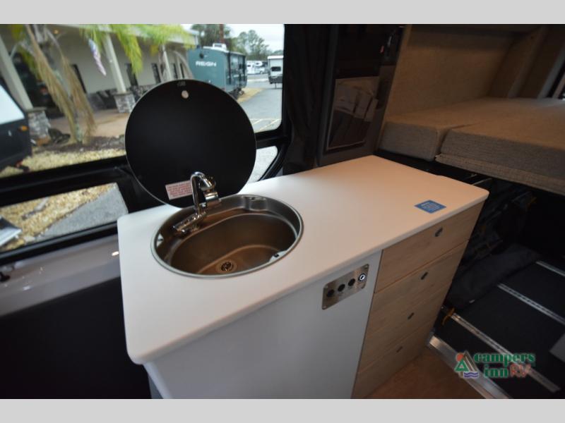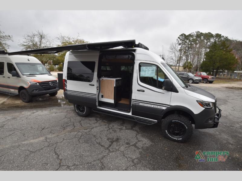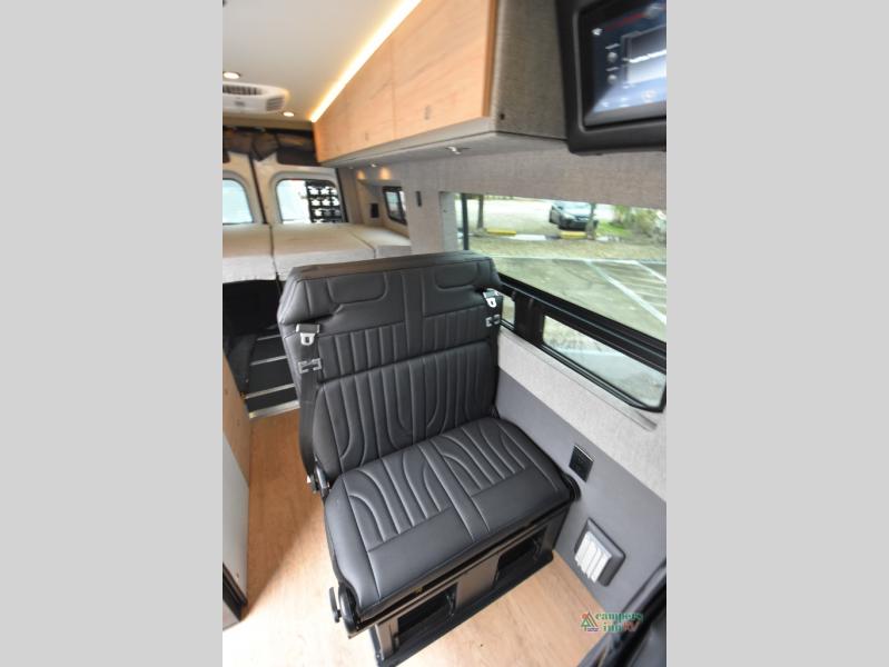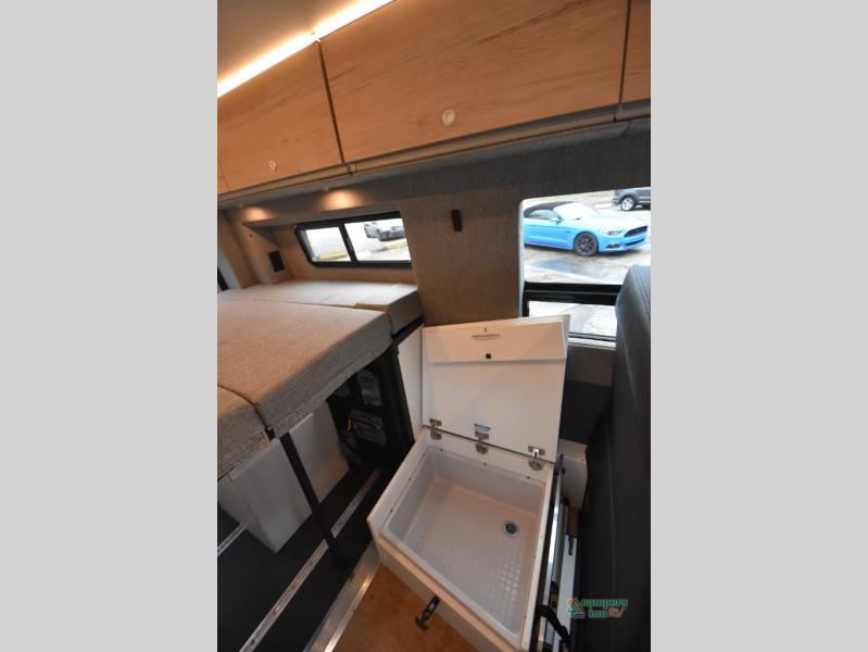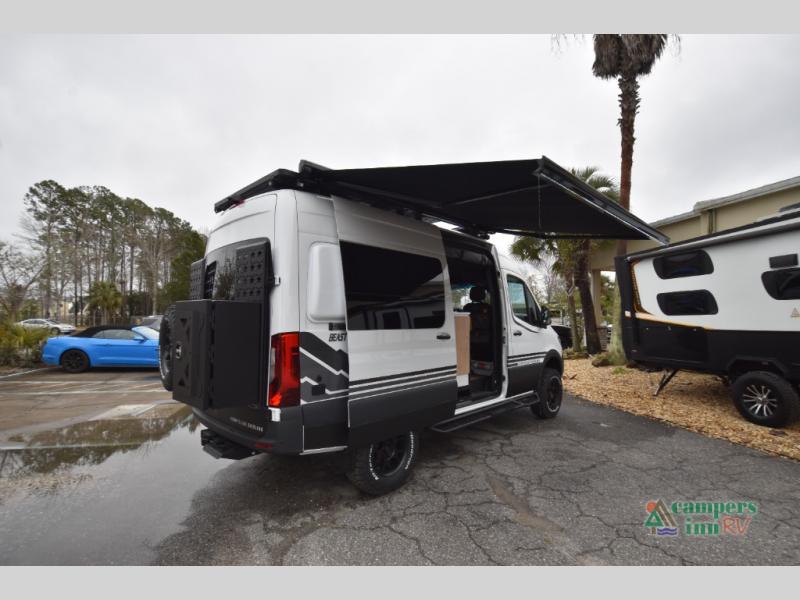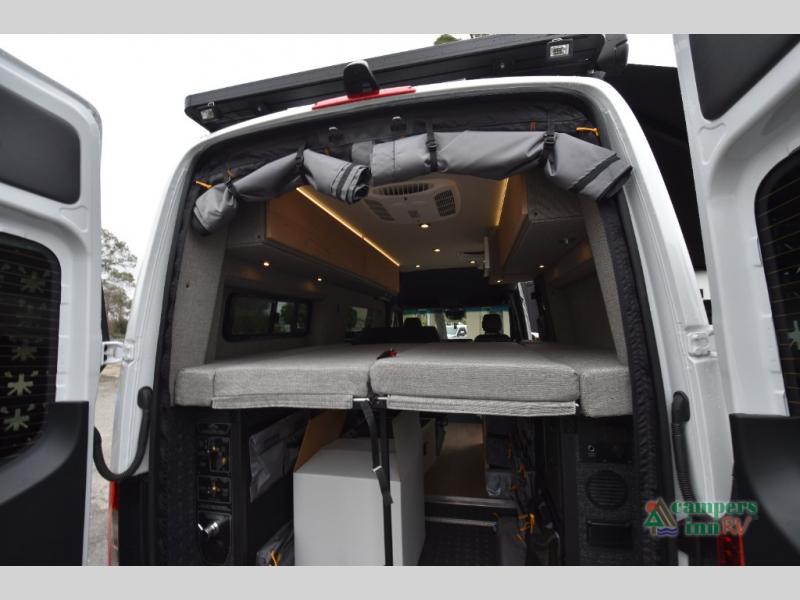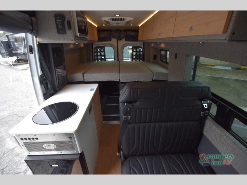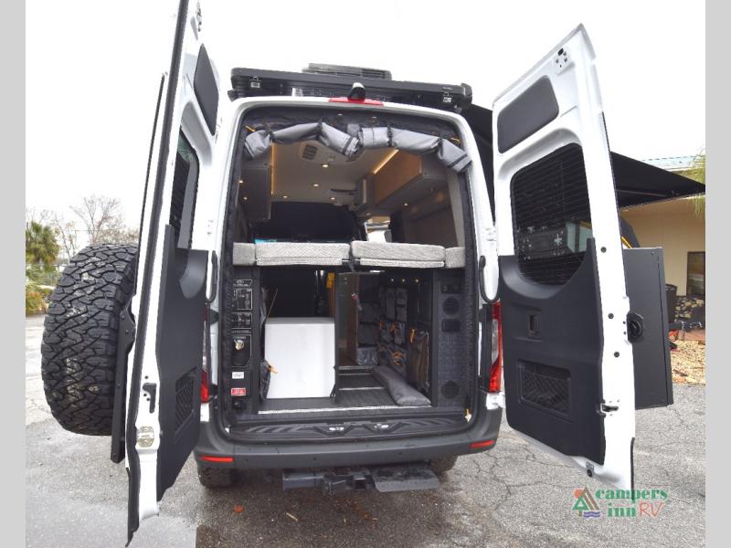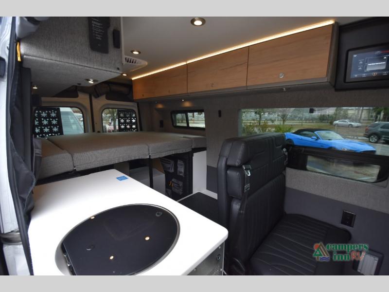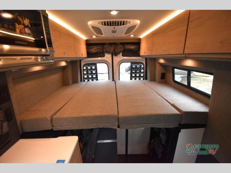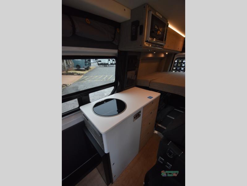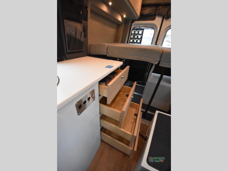 The Beast MODE van is more rugged than ever to meet your adventurous lifestyle! The nVader Rack system by Flarespace lets you transport bikes, kayaks, and gear galore. Crank up your favorite tunes with the JBL premium co-axial door speakers, and hit your favorite trails with the Agile Off Road Ride Improvement package. The swivel driver and passenger seats make for a comfortable drive and once you arrive at your destination you can prepare a delicious meal with the portable induction cooktop then enjoy it at the removable dinette table. The cargo area has a L-track system that can fold up the Dreamweaver bed when you need to load your bikes into the 103 ft. of storage. Plus, you have a 72" x 34" Groovelounge that can be for sitting, lounging, or sleeping!