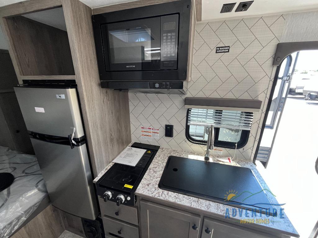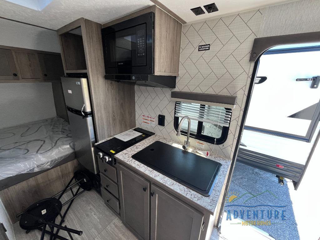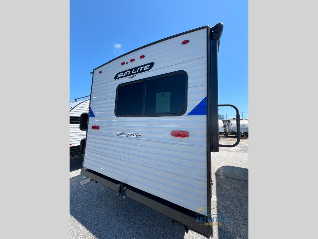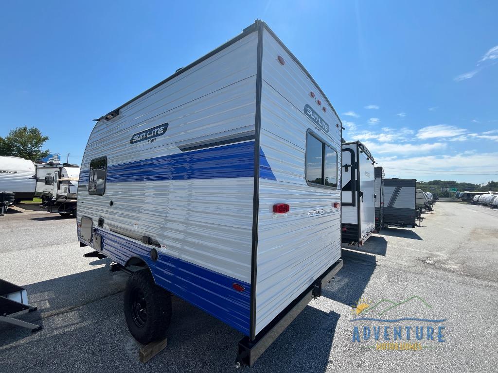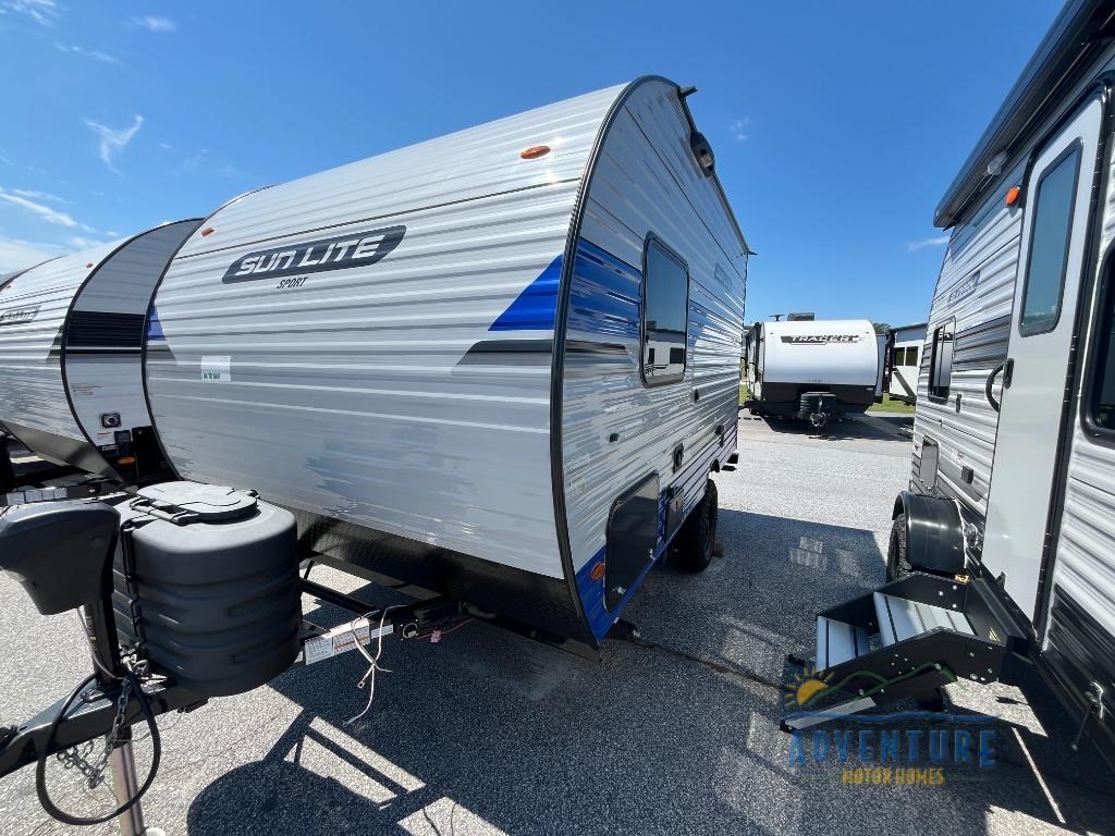 You can trust the build and enjoy your experience with any one of these Sunset Park RV Sun Lite travel trailers! Their aerodynamic profile is not only easy to haul, but also saves on fuel. They are built to withstand years of traveling even though they are lightweight with a diamond plate rock guard, a one piece PVC roof membrane, Dexter Spring-Leaf axles, and tinted safety glass windows. Some comfort standards you are sure to enjoy are the two-burner stove top range with hood, light and fan, plus the refrigerator and microwave, and an outside shower to help keep the dirt outdoors where it belongs.