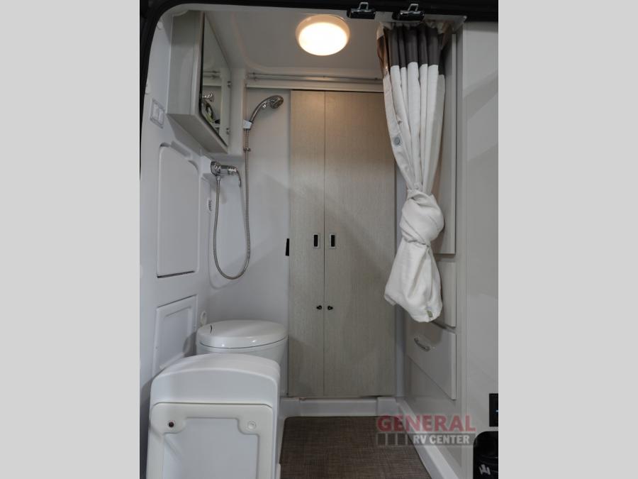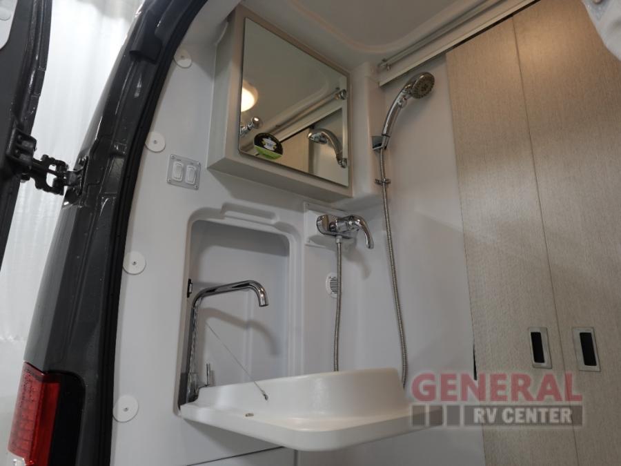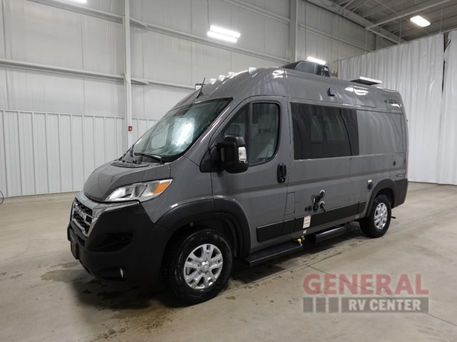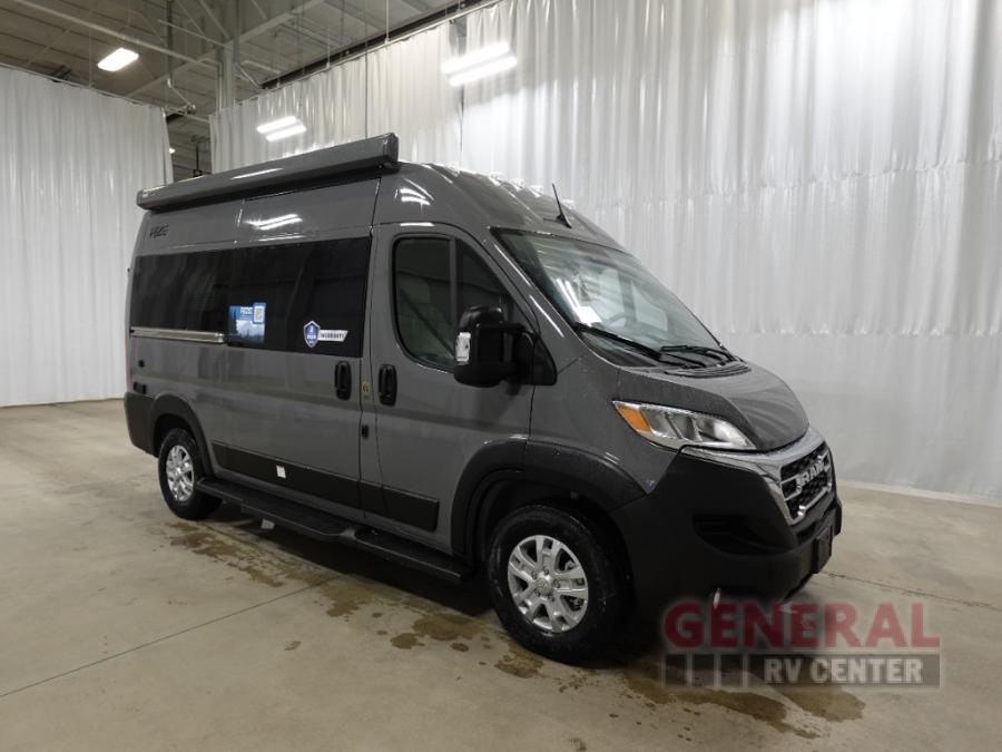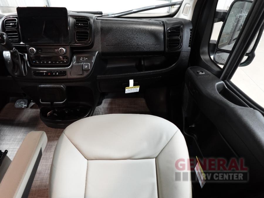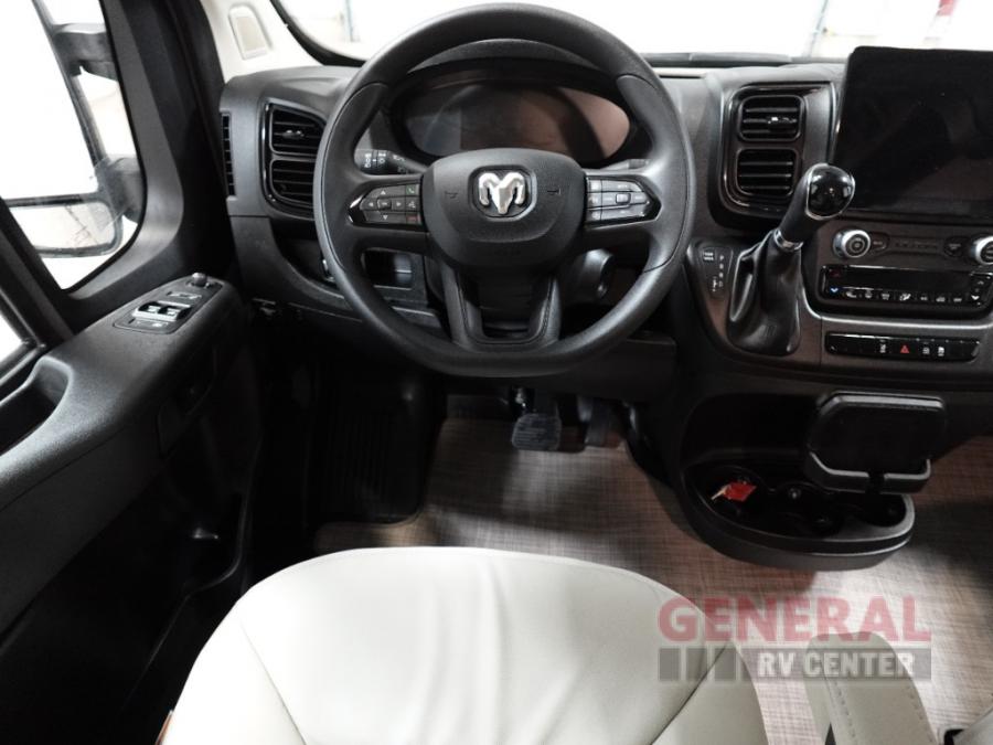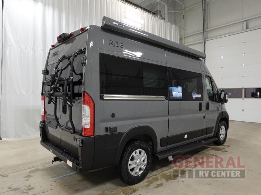 The Rize Class B gas motorhome by Thor Motor Coach allows you to experience the camping lifestyle in a compact RV packed with convenient features. There is a 3.6L Pentastar V6 engine and 276 HP to power your excursions, and the outdoor enthusiast will love the 200W solar panel and solar charge controller. Each model includes residential vinyl flooring, TecnoForm Euro-style upper cabinet doors, and premium window privacy shades. You'll find pressed countertops in the kitchen and a glass protective cover and task lighting above the cooktop to easily cook meals each day. The keyless entry system adds to the convenience found throughout these models, plus there is an exterior LP connection if you want to hook up your own grill and a rear water sprayer to wash off your hiking boots.