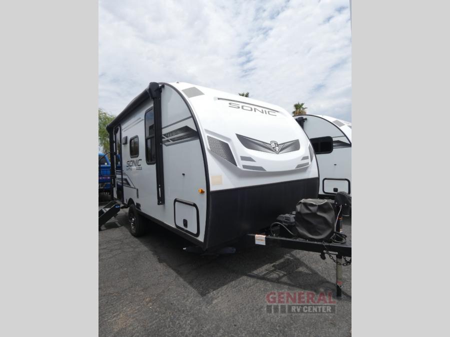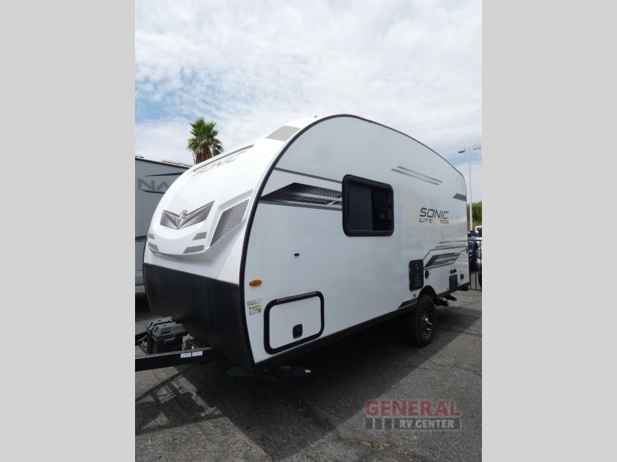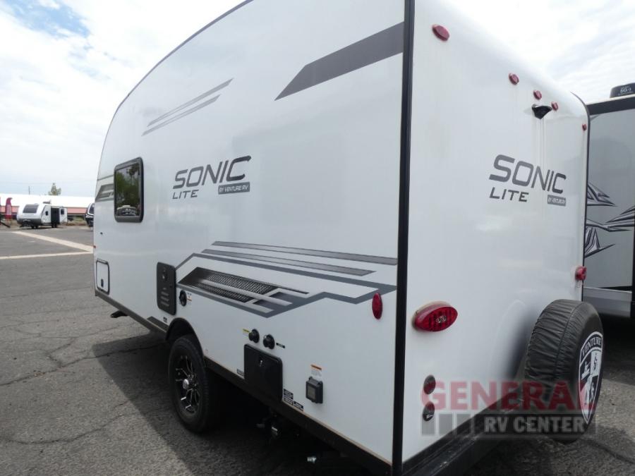 With any Sonic Lite travel trailer by Venture RV, you begin with Next Generation in RV frame technology with the NXG frame, AZDEL Onboard composite panels, tongue and groove plywood floor decking, and a tucked rear bumper. The Fall Package 1.6 provides a motion light in the bathroom, a deep round stainless steel sink with cover in the kitchen, and the JBL Flip Bluetooth Speaker which allows you to use smartphone technology in the RV, plus a lighted power tongue jack, and WIFI prep to mention a few features. Get ready for comfort and style in a Sonic Lite ultra-lightweight, single-axle travel trailer of your choice!