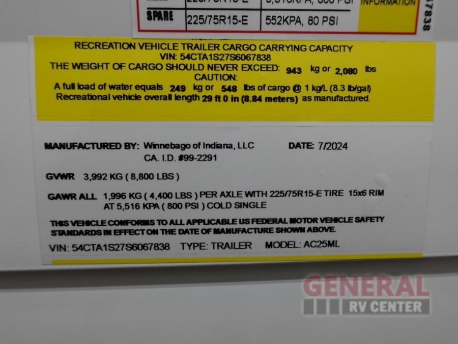 Winnebago Access travel trailer 25ML highlights: